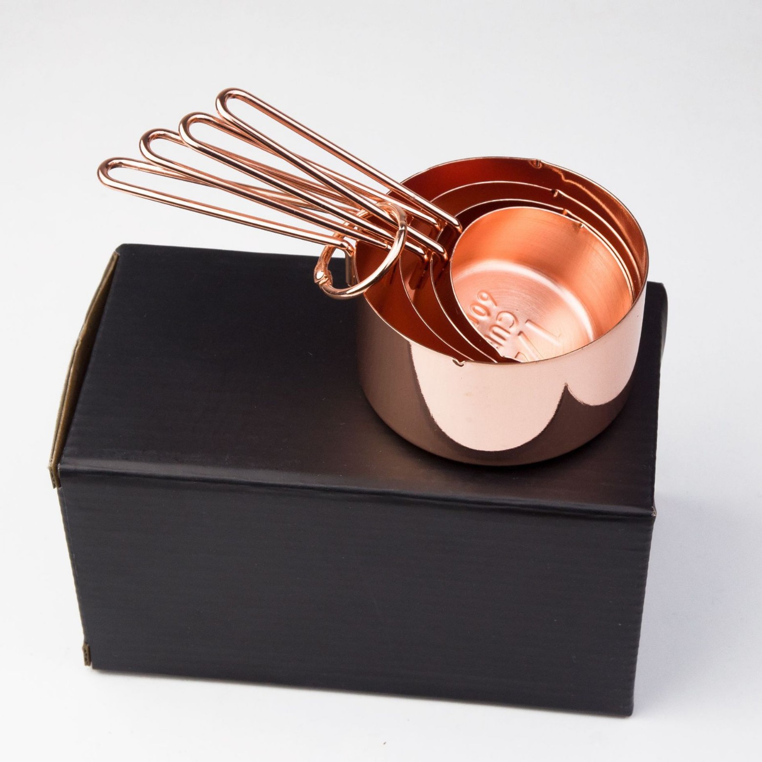 • 초두께 304 로즈 골드 4 피스 측정 컵