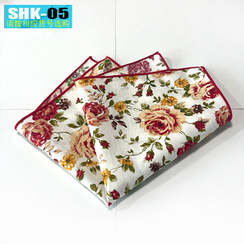 공장 직영 패션 캐주얼 남성 포켓 타올 세트 손수건 타월 액세서리 면 인쇄 작은 사각형 꽃스토어 가기