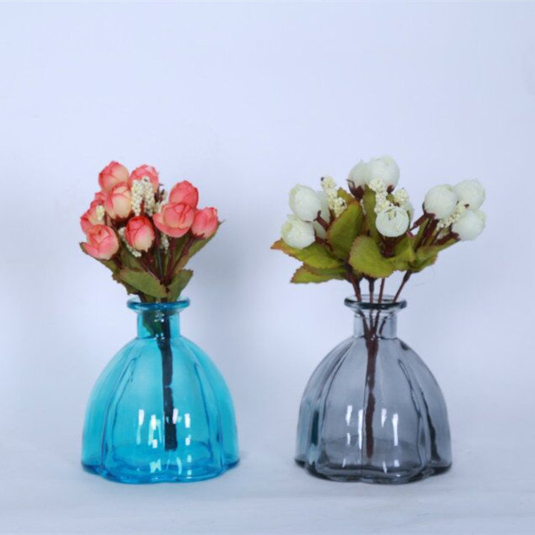 창조적 인 유럽식 색상 작은 입 호박 꽃병 홈 장식품 꽃병 수직 호박 유리 꽃병 수경법 병