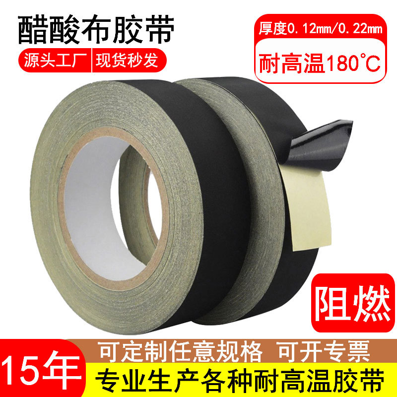 0.22mm 아세테이트 천 테이프 고온 저항 난연 절연 케이블 테이프 손으로 찢을 수 있는 검은색 아세테이트 천 테이프스토어 가기