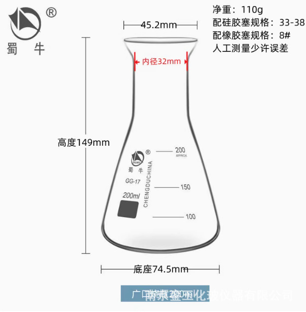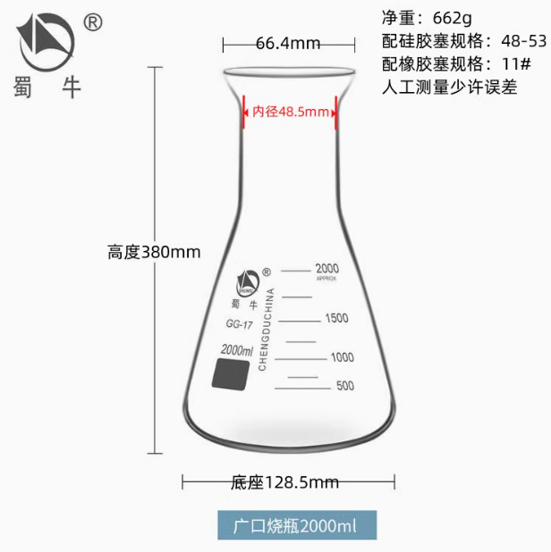 • 실리콘 마개가 달린 삼각 플라스크