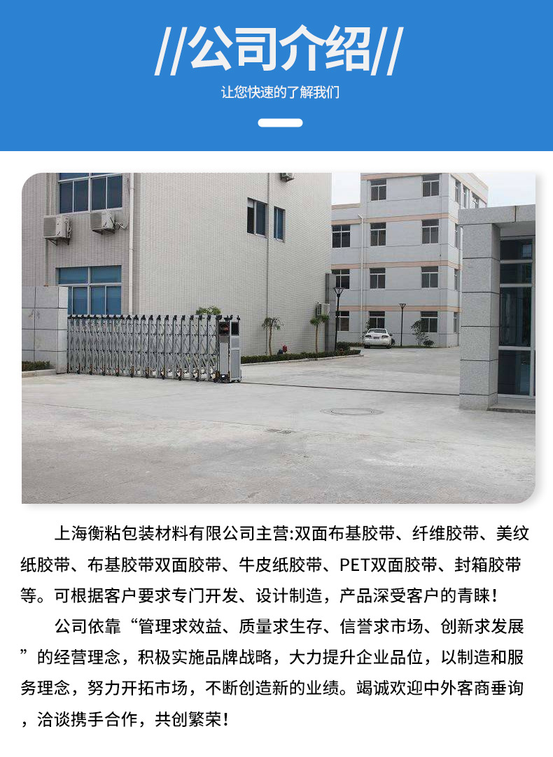 是一家专业从事化工产品研发与销售的综合型高科技服务性企业。公司主营化工 胶粘剂 特种胶带 等!公司由一批化工领域的专业研究人员及从事多年化工销售团队组建而成。同时,我公司拥有完善的技术团队,能够及时为客户提供技术支持与服务。我公司自成立以来,一直秉承“科技创新,立足诚信,感恩于心”的理念,力求创造与客户合作共赢的局面。在广大新老客户的大力支持下,我公司员工经过不懈努力,公司已快速发展成为国内有名化工企业。公司一直与国内外大型化工企业保持良好的合作关系,使我公司的服务品质得到不断提高。“做客户信赖的化工产品可以选择]品牌”是企业坚持不懈的奋斗目标,我们也时时刻刻以此来严格要求自己。如果你对我们公司的产品感兴趣,期待您的来电咨询,期望与您携手共进,共创美好未来!封箱胶带、双面胶、美纹纸胶带、海绵胶带、双面胶带、牛皮纸胶带印刷胶带、胶带等产品专业生产加工的公司