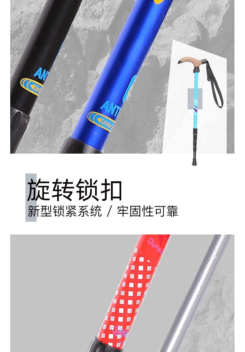 알펜 스톡 압다 코르크 곡선 멀티 섹션 개폐식 충격 흡수 미끄럼 방지 접이식 하이킹 야외 알루미늄 합금 알펜 스톡스토어 가기