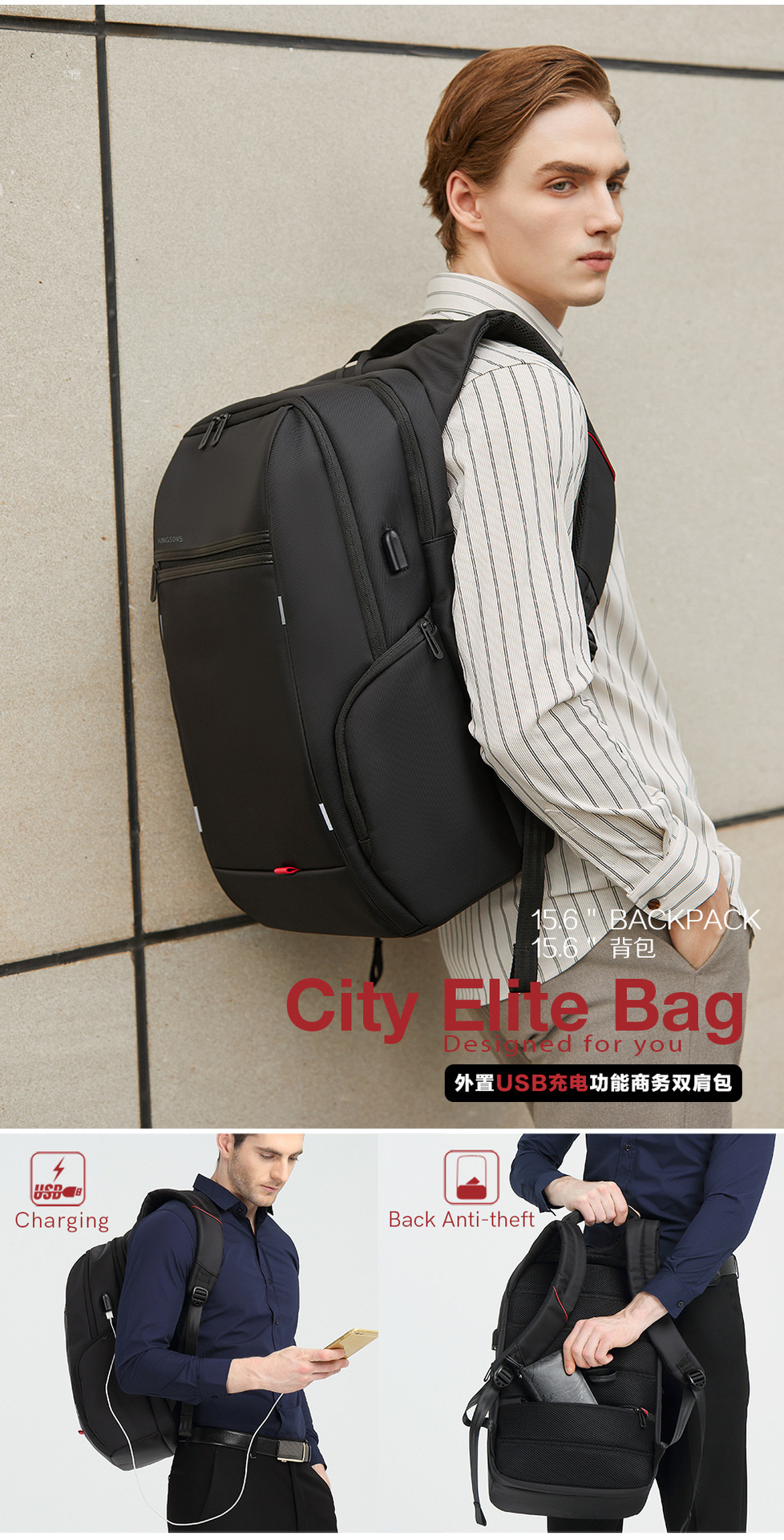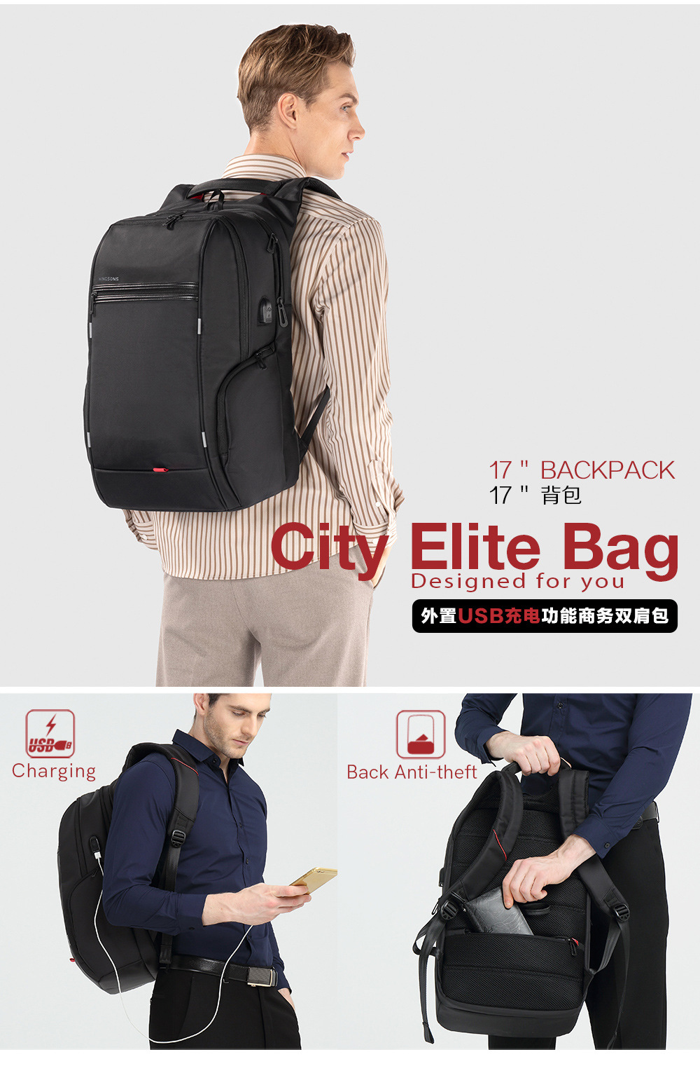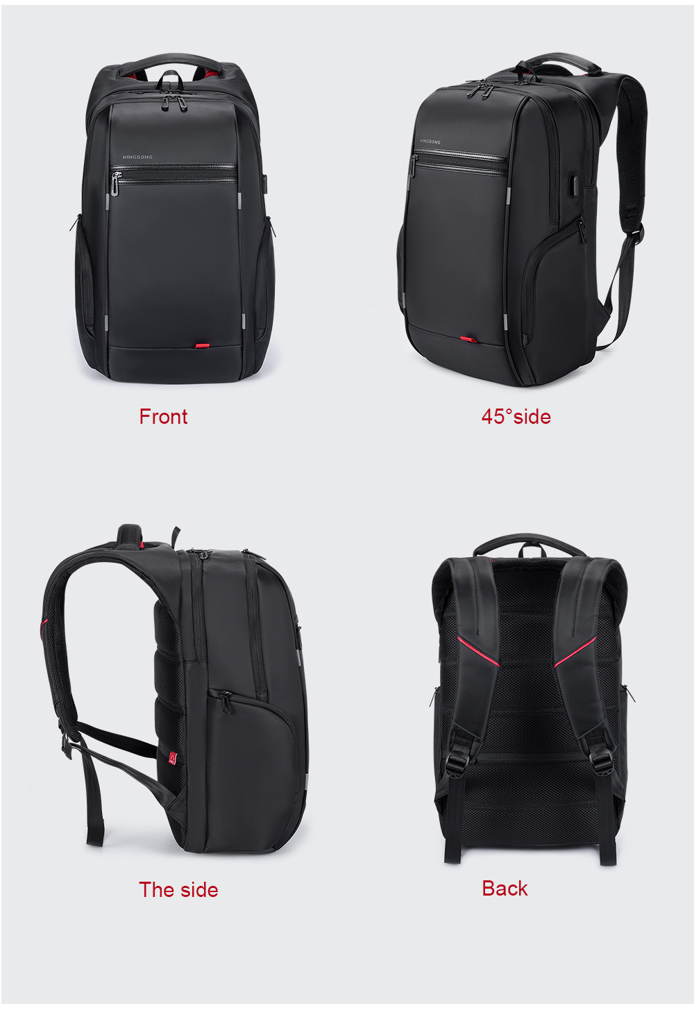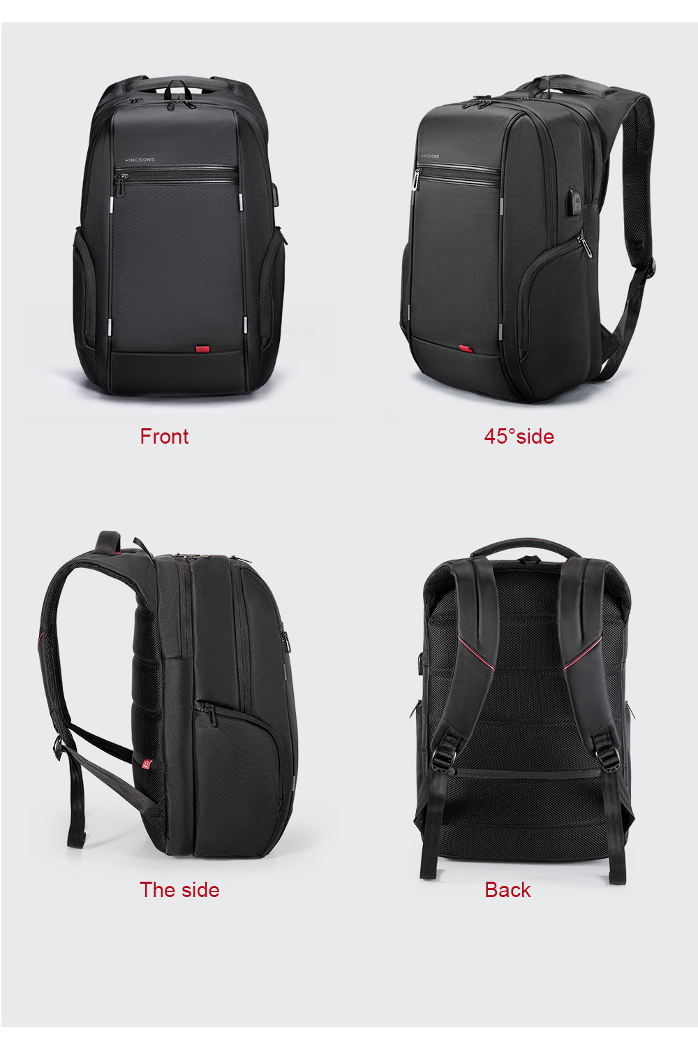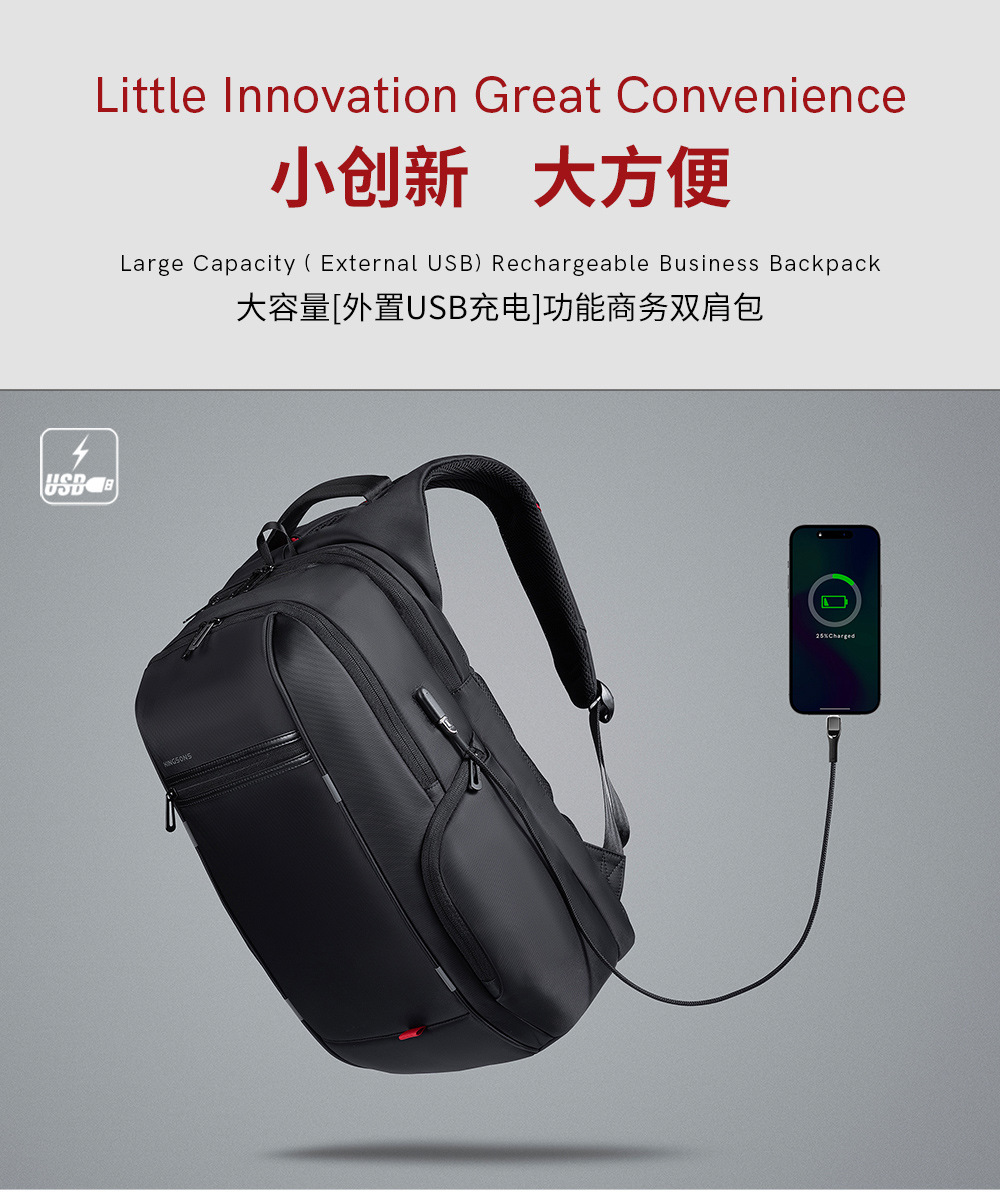 Jinshengs 여행 배낭 USB 충전 비즈니스 다기능 방수 대용량 배낭 중학생 학교 가방