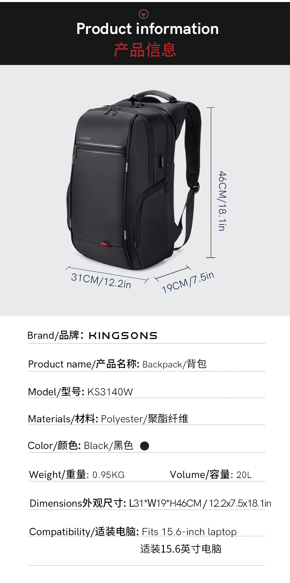 Jinshengs 여행 배낭 USB 충전 비즈니스 다기능 방수 대용량 배낭 중학생 학교 가방스토어 가기