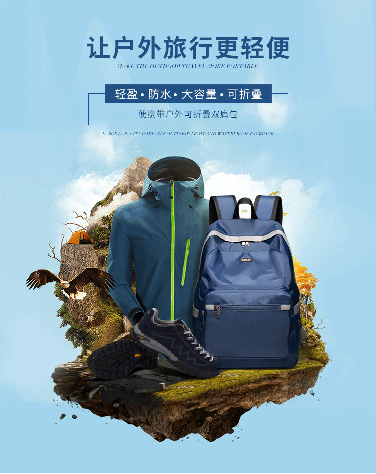 GOLF 새로운 남성 및 여성용 접이식 백팩 경량 여행 가방 학교 가방 등산 가방 초경량 야외 배낭스토어 가기