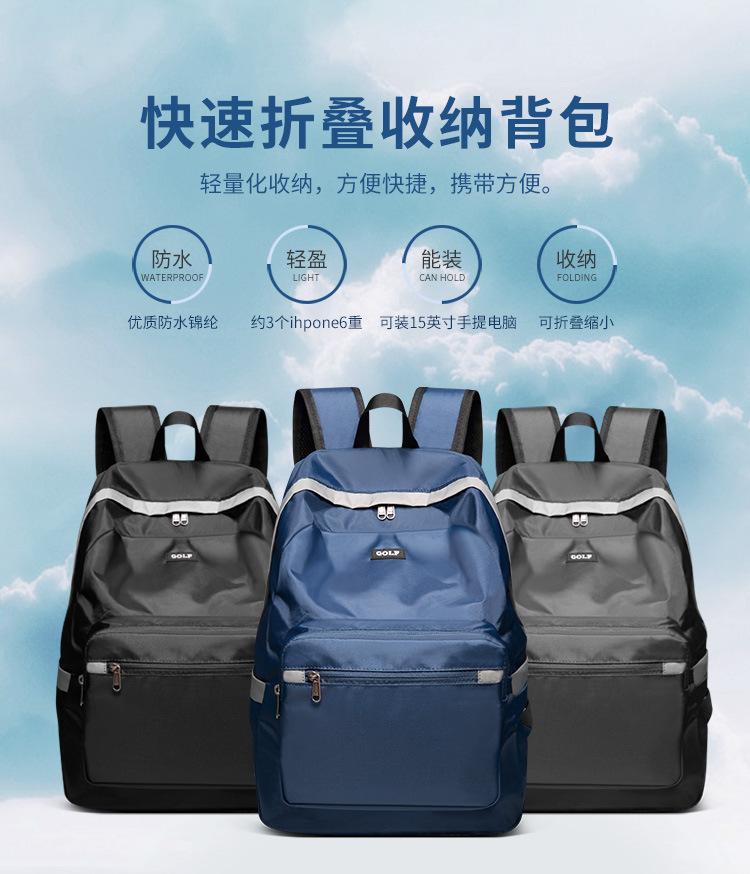 GOLF 새로운 남성 및 여성용 접이식 백팩 경량 여행 가방 학교 가방 등산 가방 초경량 야외 배낭