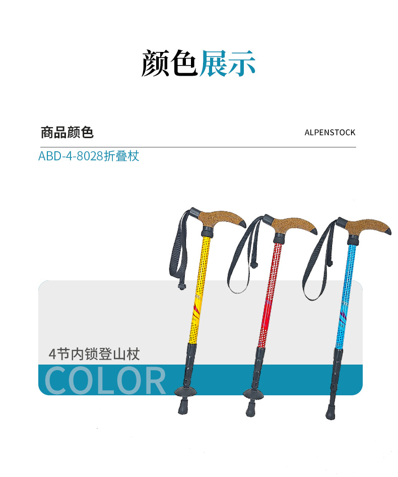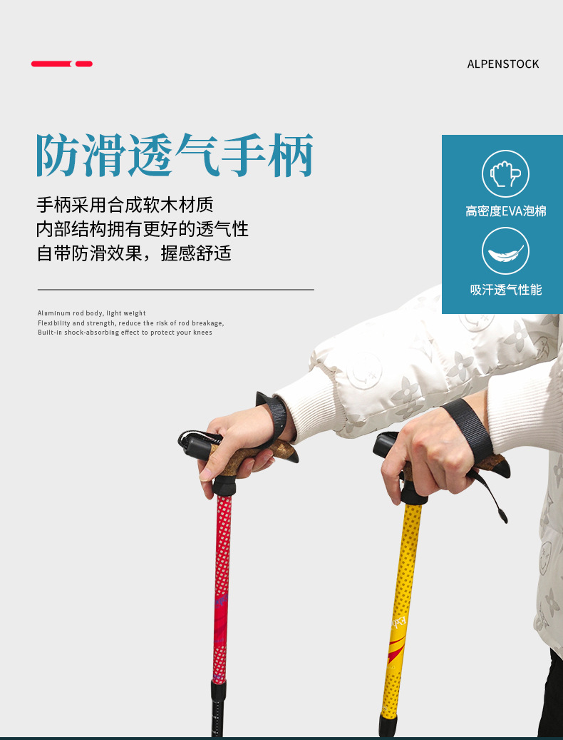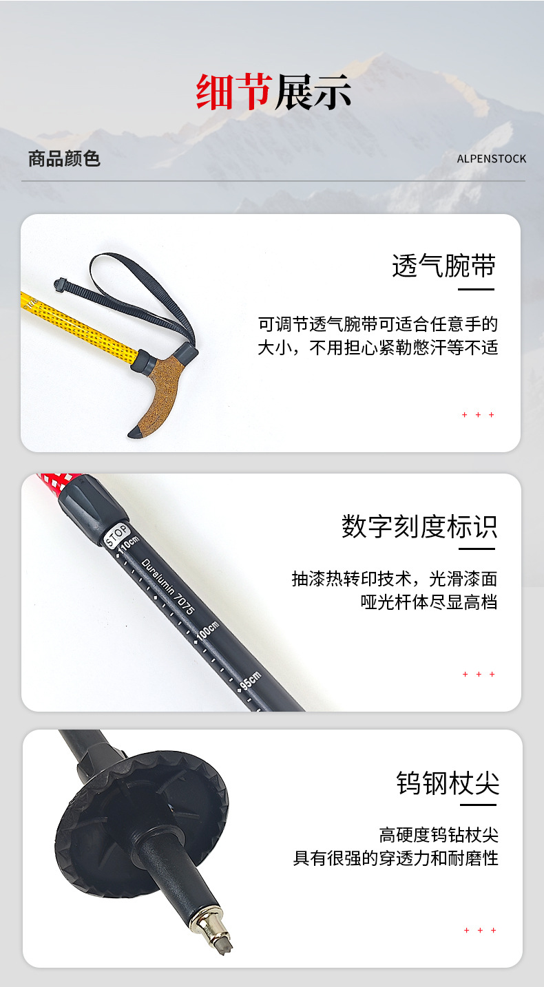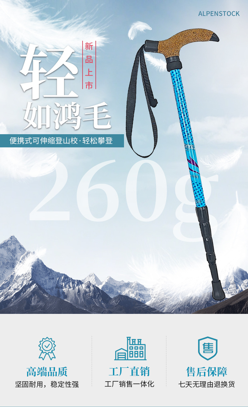 7075 알루미늄 합금 T형 손잡이 등산 스틱, 휴대용, 미끄럼 방지, 가볍고 전문적인 야외 등산 스틱스토어 가기