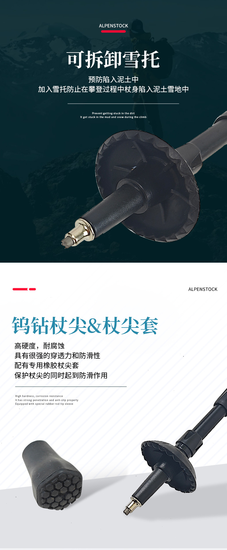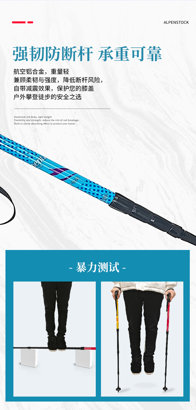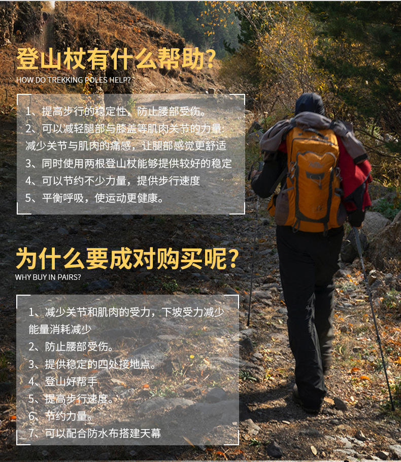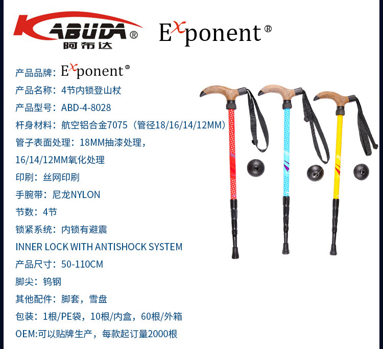 7075 알루미늄 합금 T형 손잡이 등산 스틱, 휴대용, 미끄럼 방지, 가볍고 전문적인 야외 등산 스틱스토어 가기