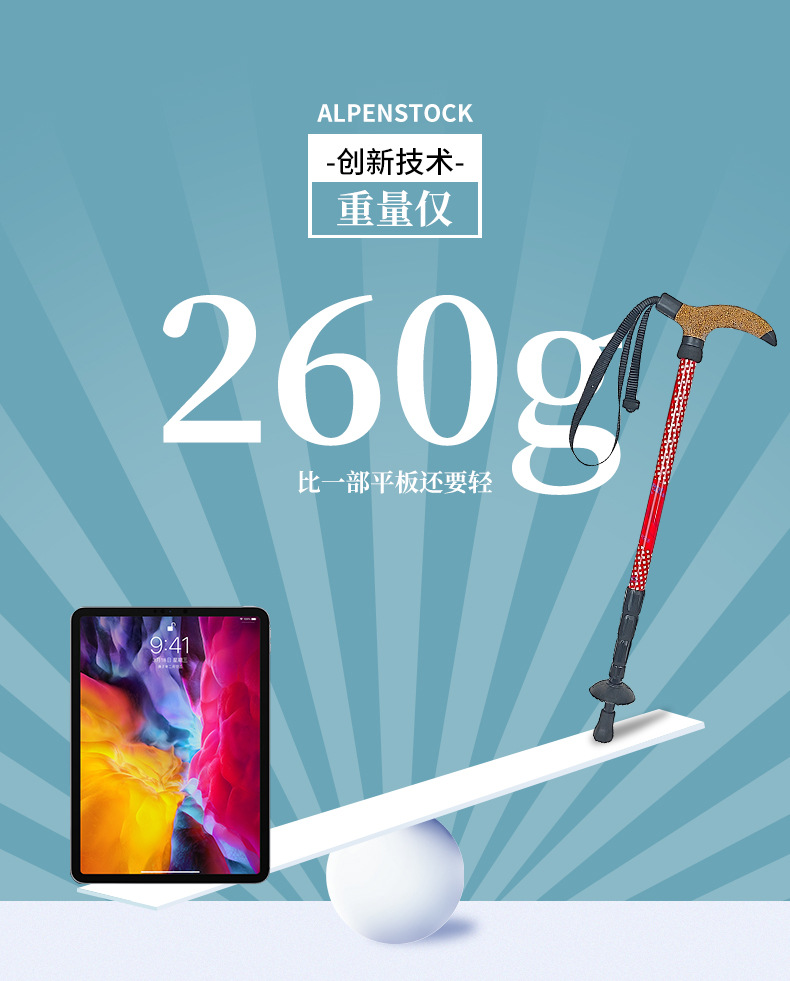 7075 알루미늄 합금 T형 손잡이 등산 스틱, 휴대용, 미끄럼 방지, 가볍고 전문적인 야외 등산 스틱