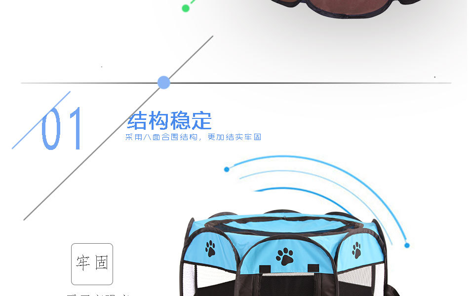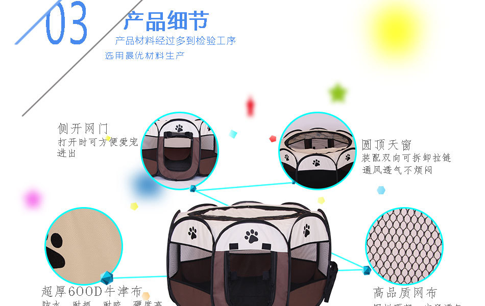 재고 접이식 팔각형 애완 동물 울타리 옥스포드 천 물기 방지 스크래치 방지 고양이 개집 케이지 애완 동물 배달실 텐트 도매