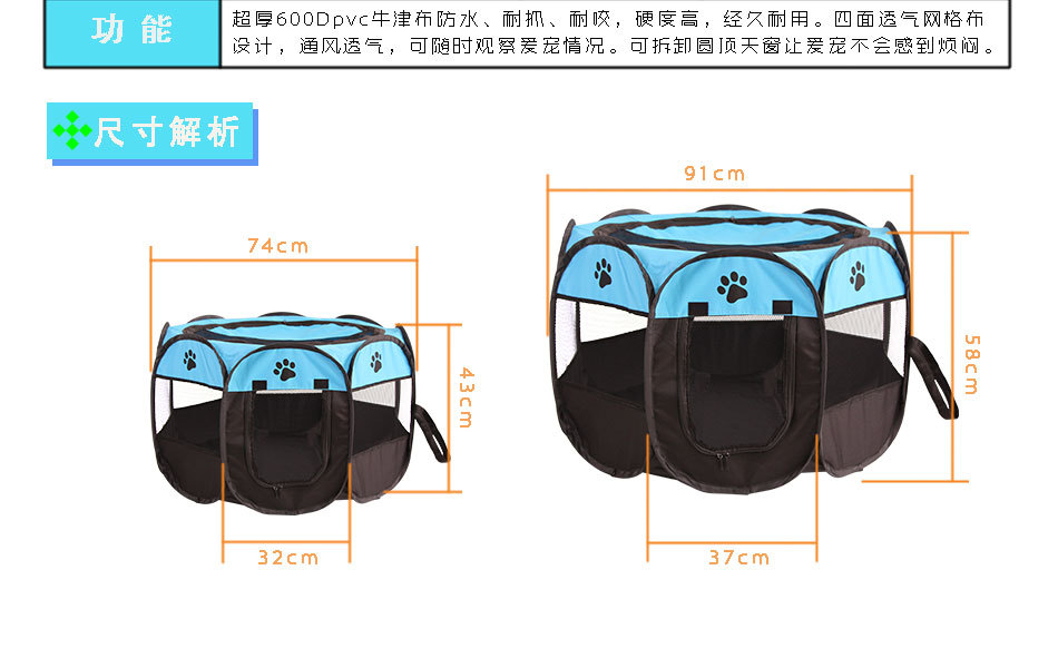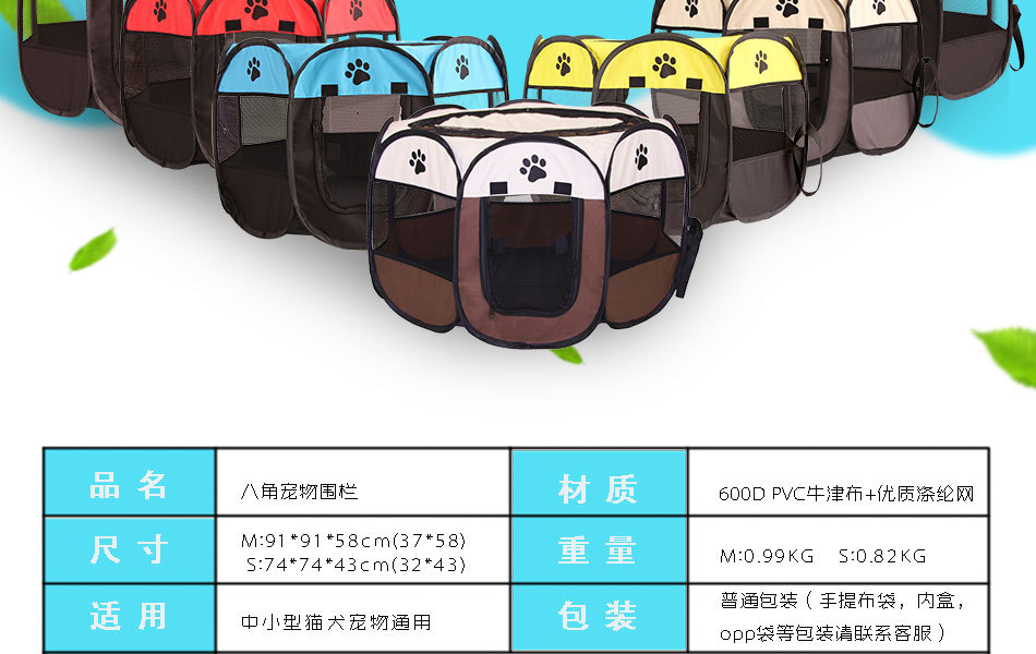 재고 접이식 팔각형 애완 동물 울타리 옥스포드 천 물기 방지 스크래치 방지 고양이 개집 케이지 애완 동물 배달실 텐트 도매스토어 가기
