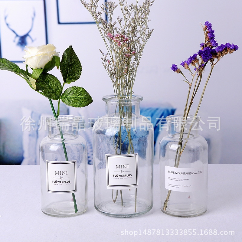 북유럽 작은 다크 브라운 병실 스타일 홈 거실 장식 꽃병 장식 투명 수경 유리 꽃병스토어 가기