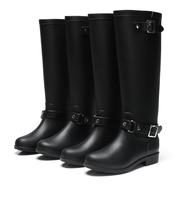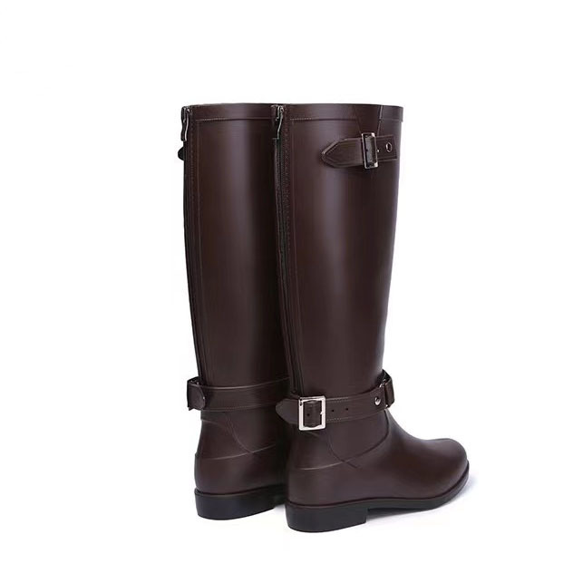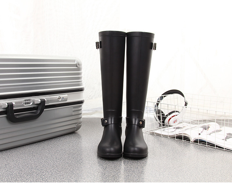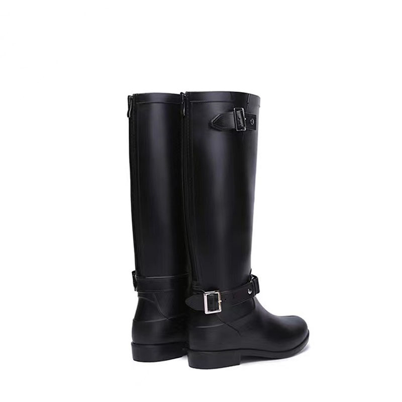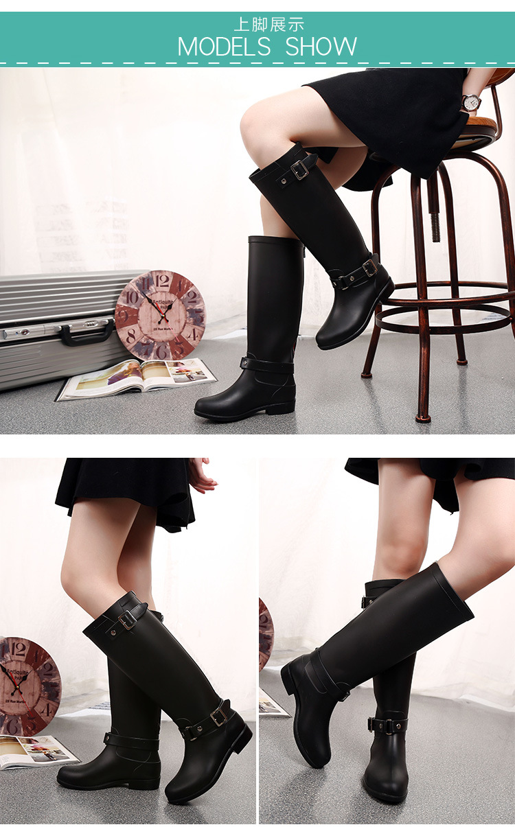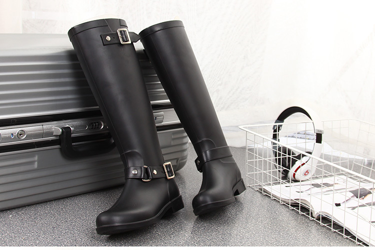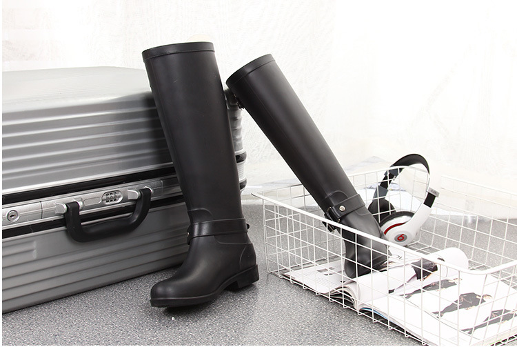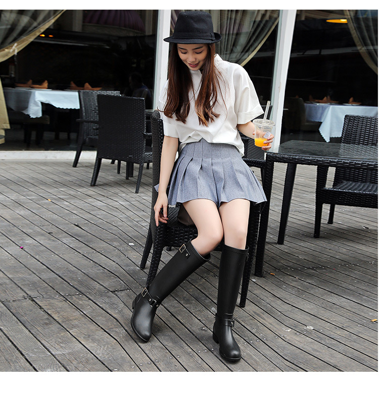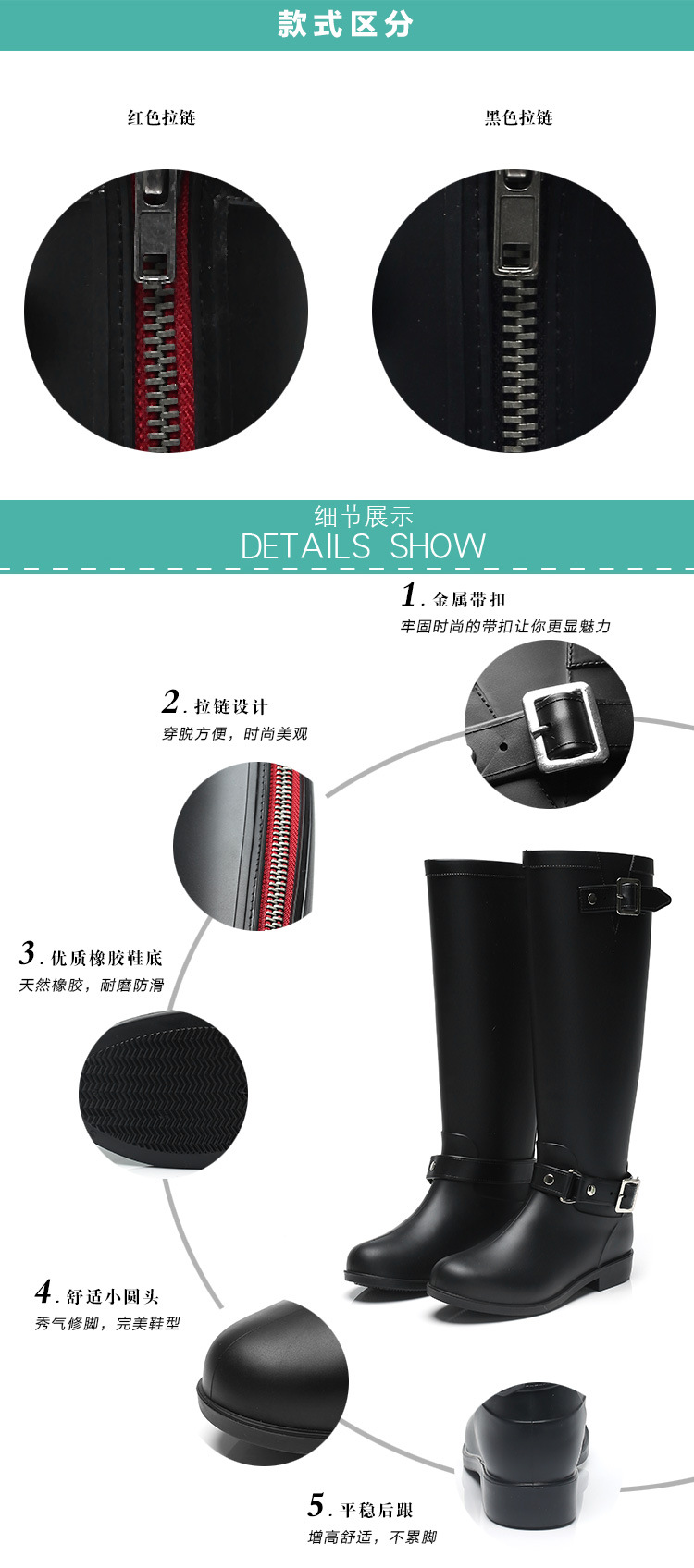 大牌骑士风格晴雨靴,红色拉链设计既起到时尚点缀 又让长筒靴穿脱方便自如。穿起它显的腿型细长 是您雨季大气场的选择!