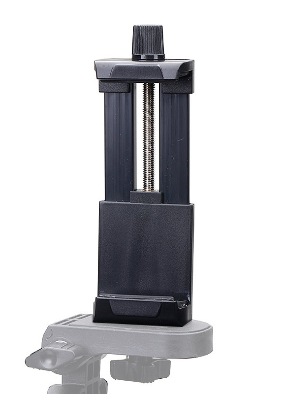 4.有标准的三脚架接口(英制1/4螺孔),可与任何的三脚架或自拍杆连接,也可装到稳定器上使用。已有三脚架的亲们,只要将三脚架的螺丝对准手机夹的螺丝孔拧紧便可。