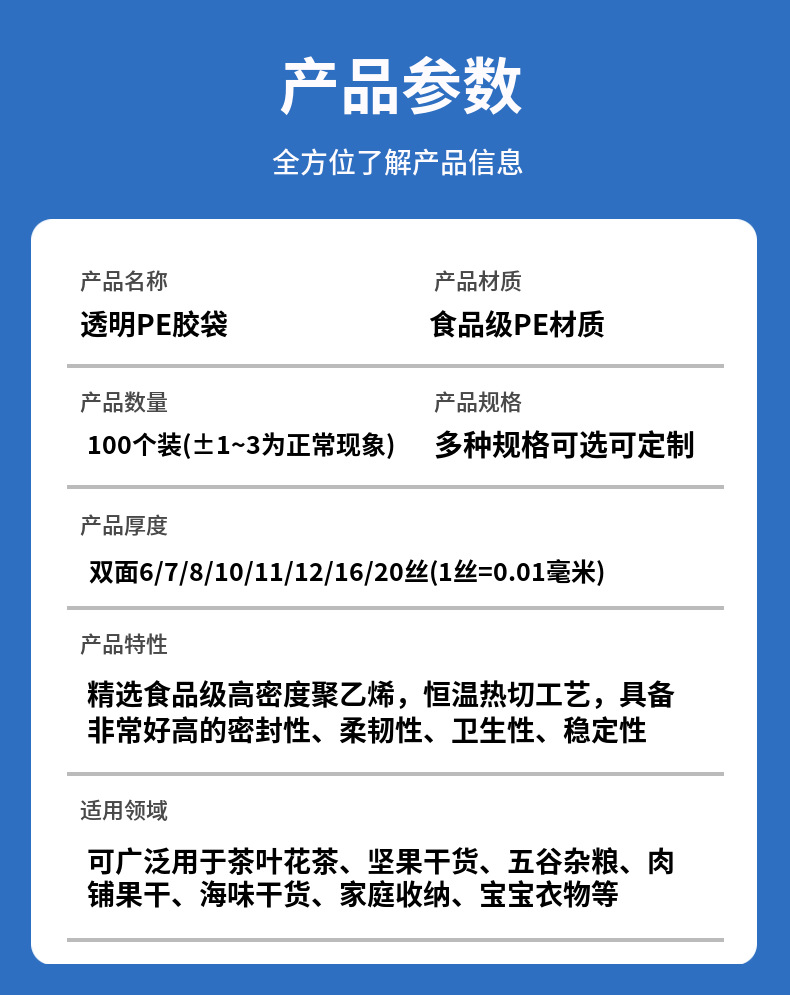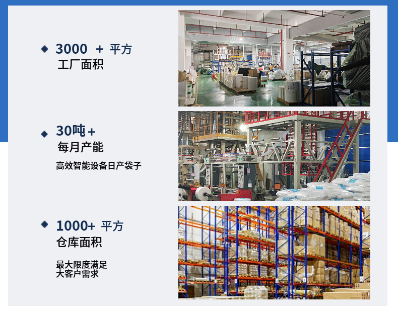 제조업체는 PE 방청 비닐봉투, 평면 비닐봉투, 투명 플라스틱 포장 봉투, 생분해성 비닐봉투, 파란색 PE 비닐봉투를 생산합니다.