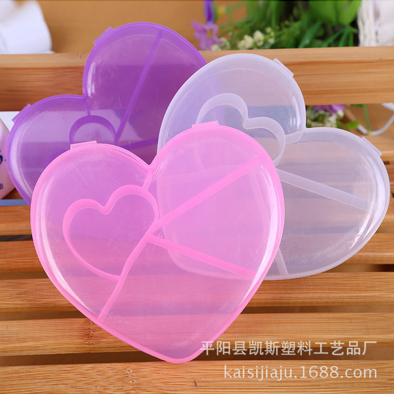 투명한 플라스틱 하트 모양의 저장 상자 고무 밴드 헤어 액세서리 보석 상자 그리드 구슬 상자 약 상자는 선물을 판매합니다