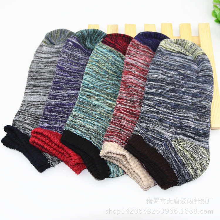 여름 폭발 남성용 폴리 에스테르 코튼 보트 양말 양말 빈티지 양말 전국 바람 두꺼운 선 얕은 입 남성면 양말 제조 업체 도매