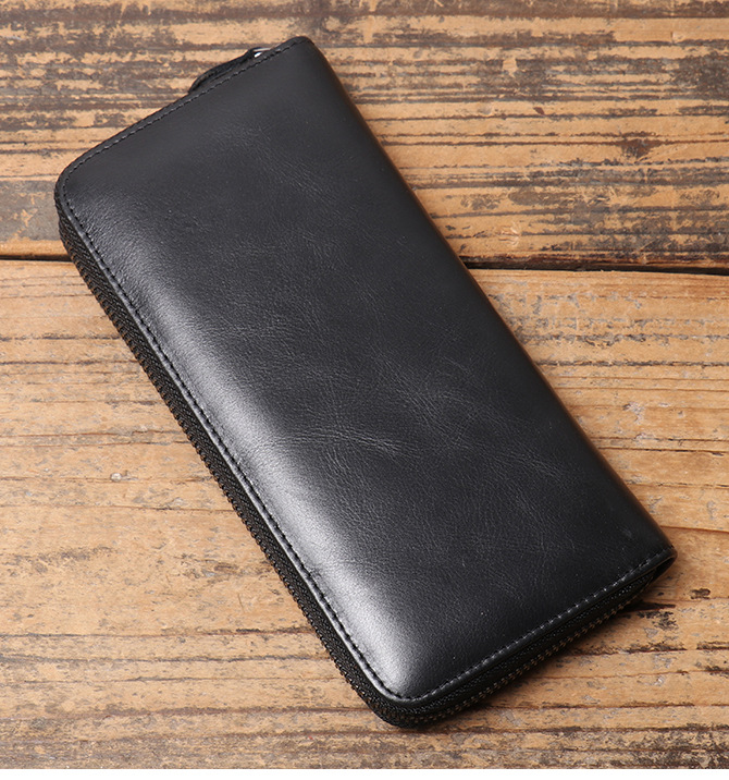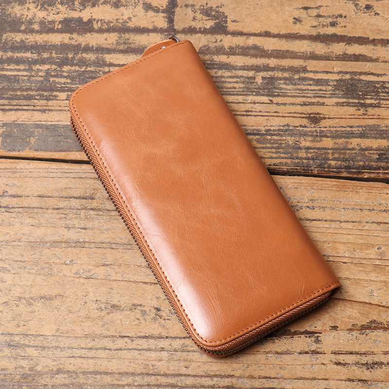 국경 새 여성 골동품 오일 왁스 가죽 핸드백 남자 멀티 카드 긴 지퍼 지갑 유행 진짜 가죽 동전 지갑