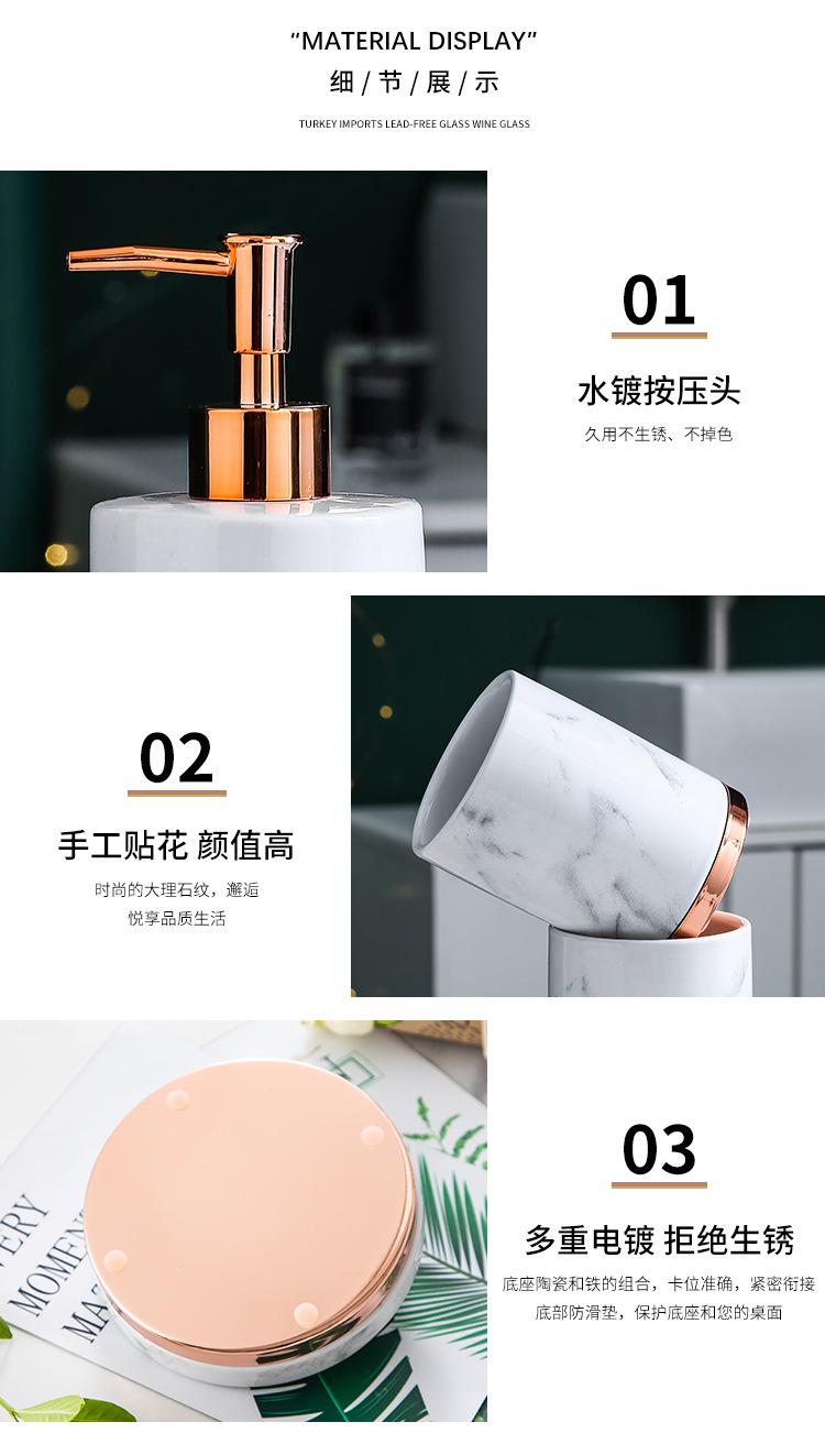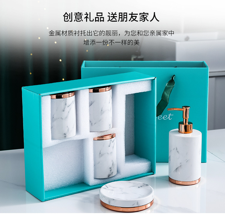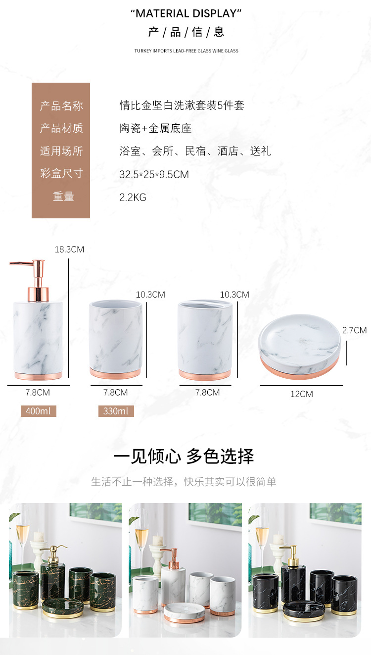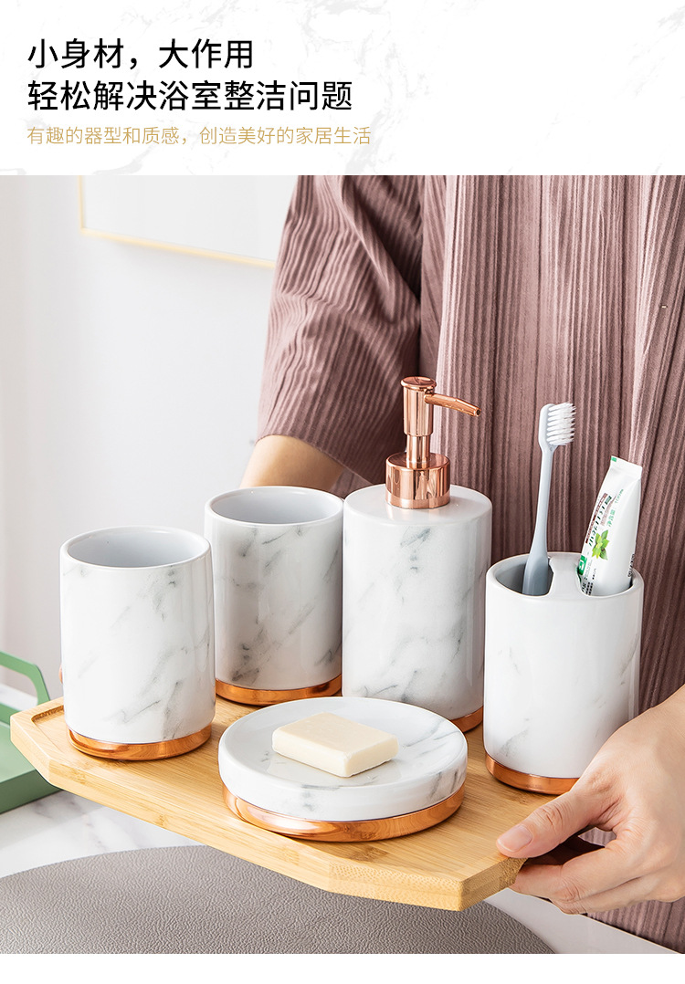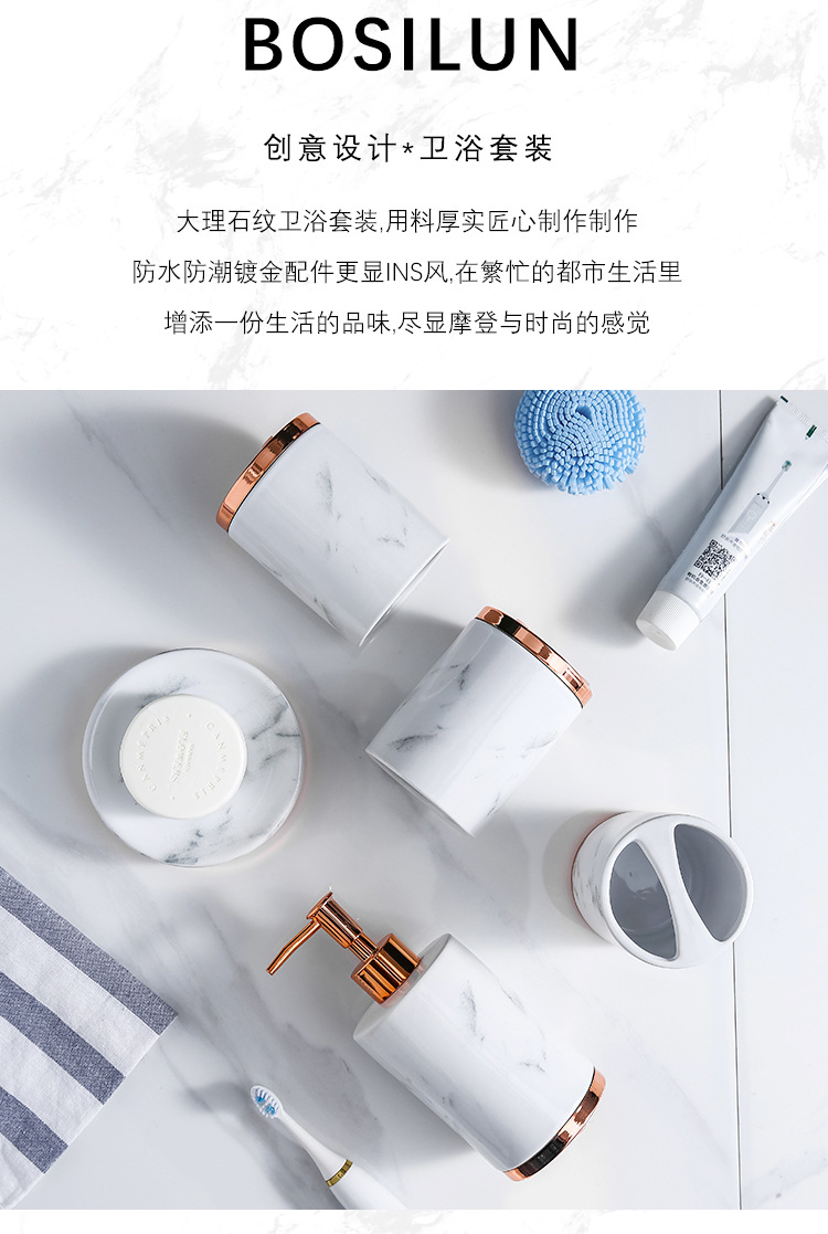 국경 간 노르딕 대리석 패턴 세라믹 욕실 워시 세트 5 피스 세트 서브 팩 손 소독제 비누 칫솔 홀드스토어 가기