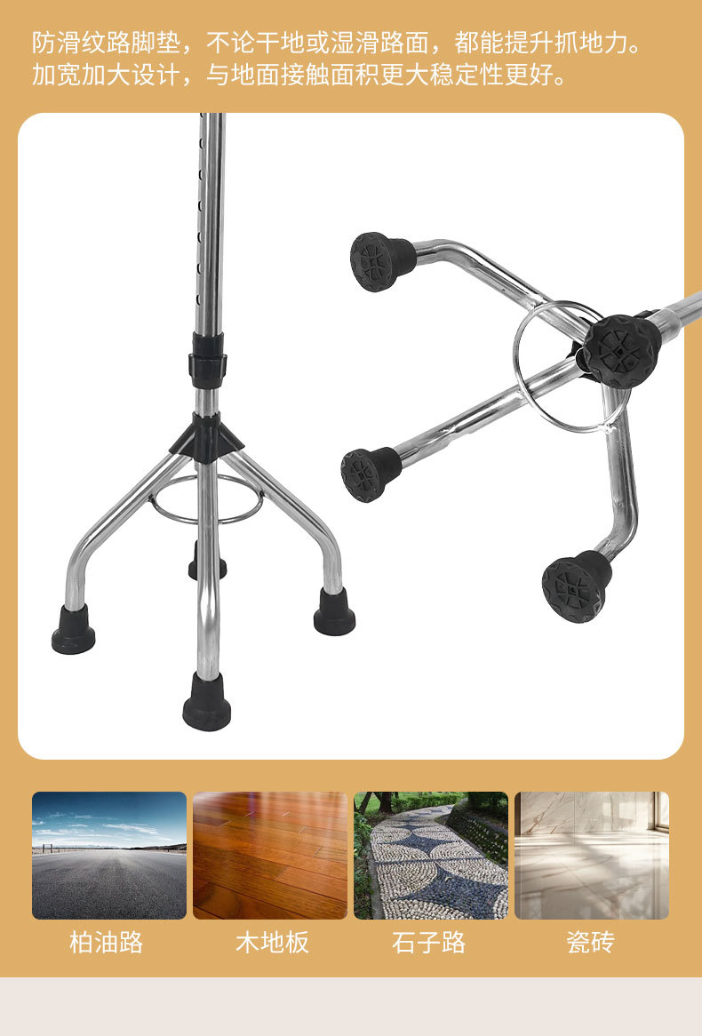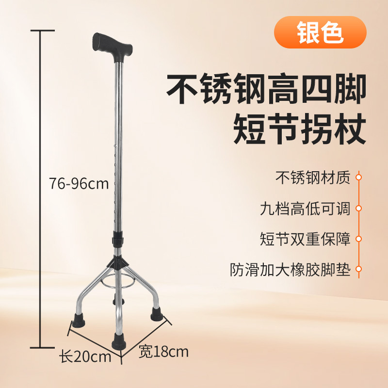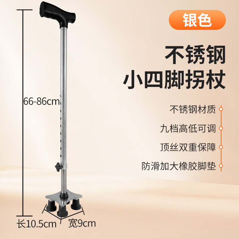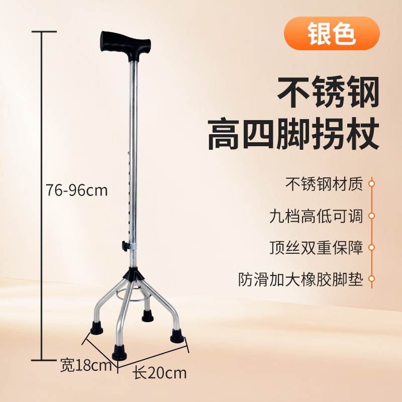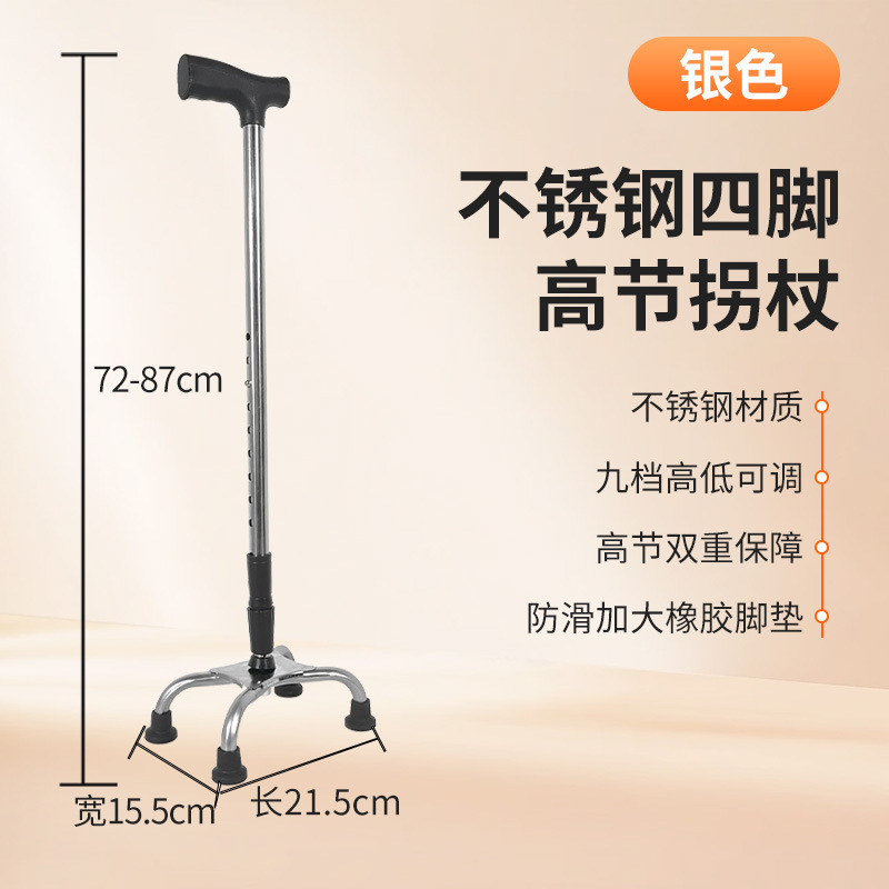 노인 지팡이 도매 스테인레스 스틸 미끄럼 방지 지팡이 조정 가능한 지팡이 장애인 보행 보조 장치 4 다리 지팡이스토어 가기