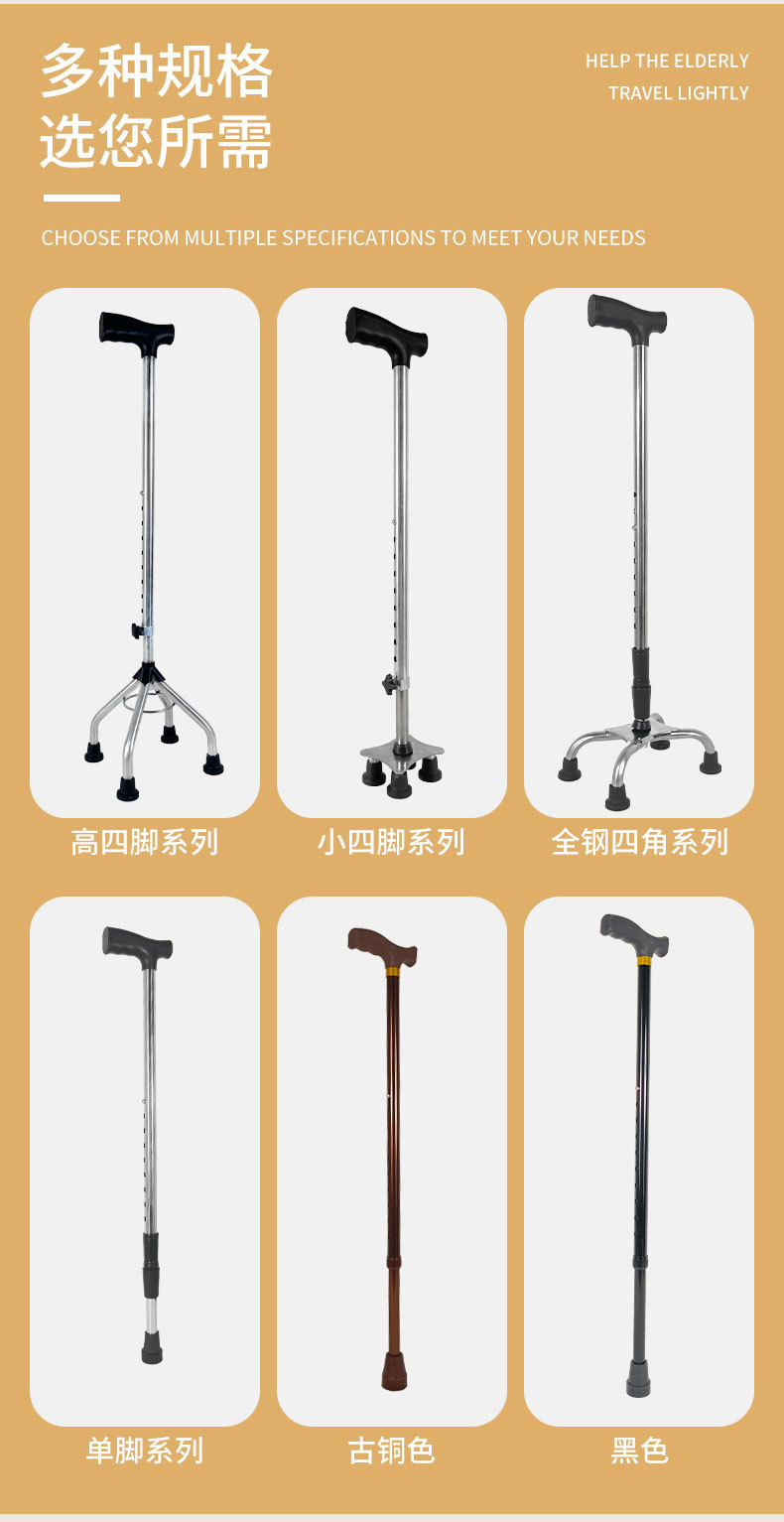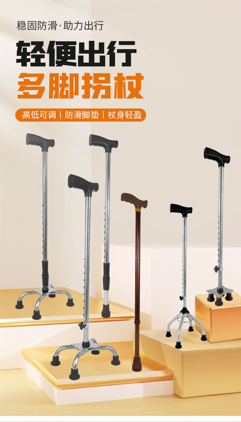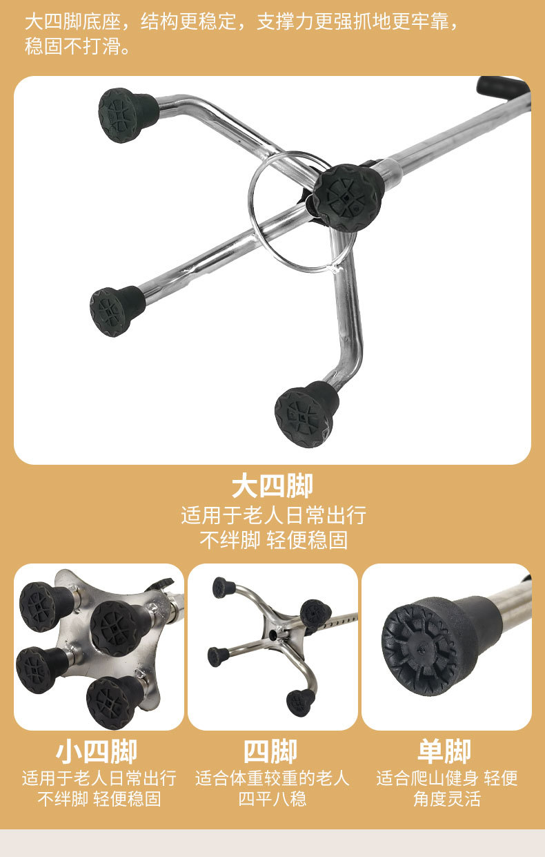노인 지팡이 도매 스테인레스 스틸 미끄럼 방지 지팡이 조정 가능한 지팡이 장애인 보행 보조 장치 4 다리 지팡이스토어 가기