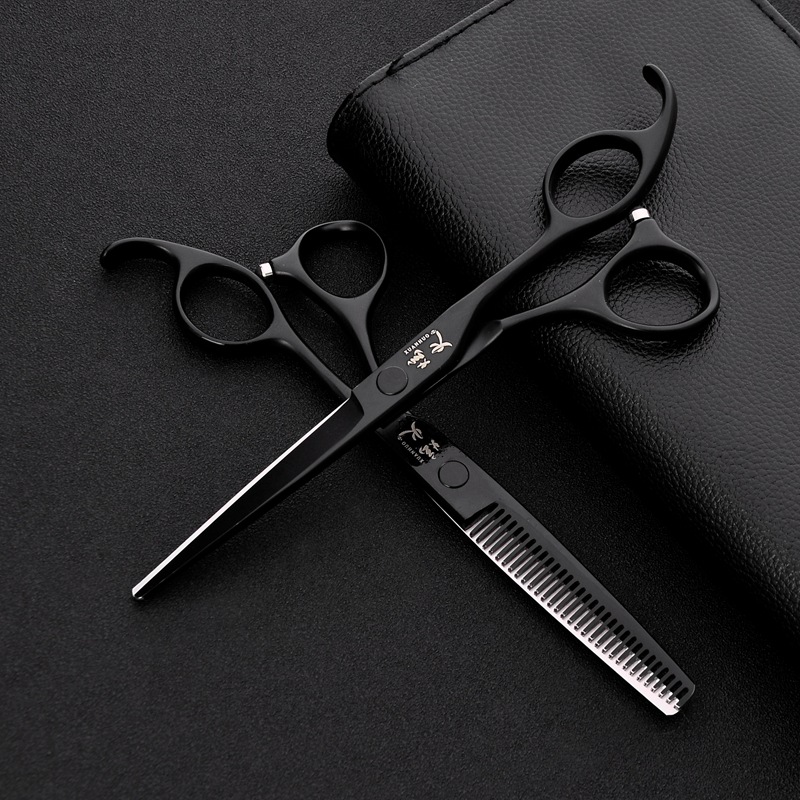 특별 제공 이발 미용 칼 미용 가위 세트 테프론 블랙 눈부심 화재 6 인치 전문 가위 평면 가위 치아 가위 우송료스토어 가기