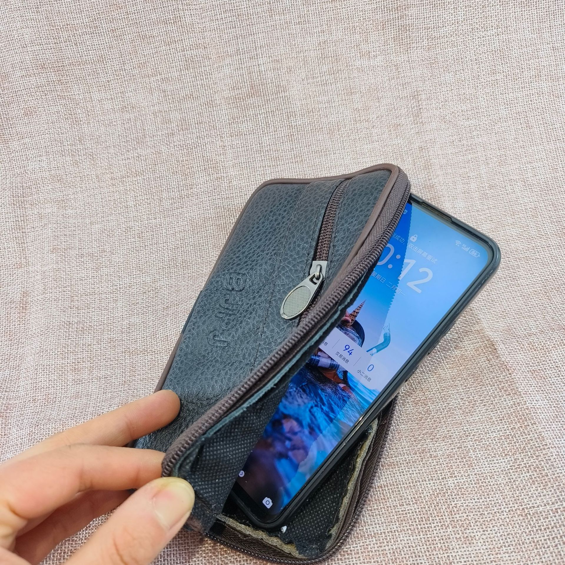 品名:男士牛皮单层腰包手机包