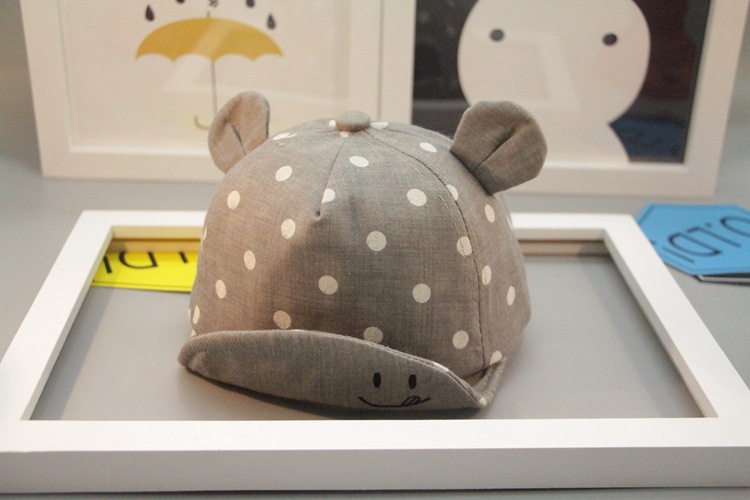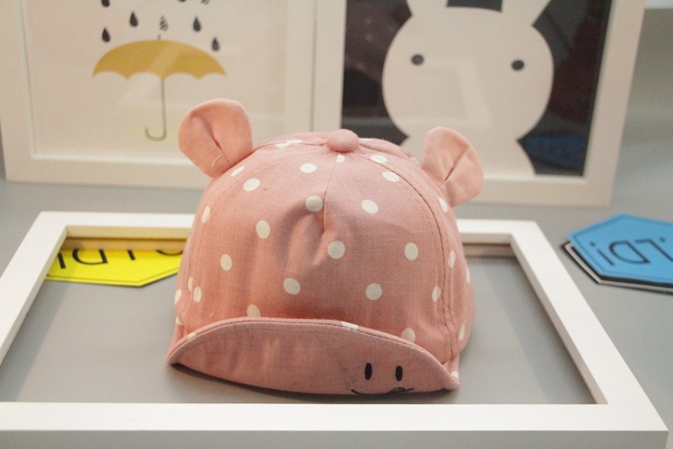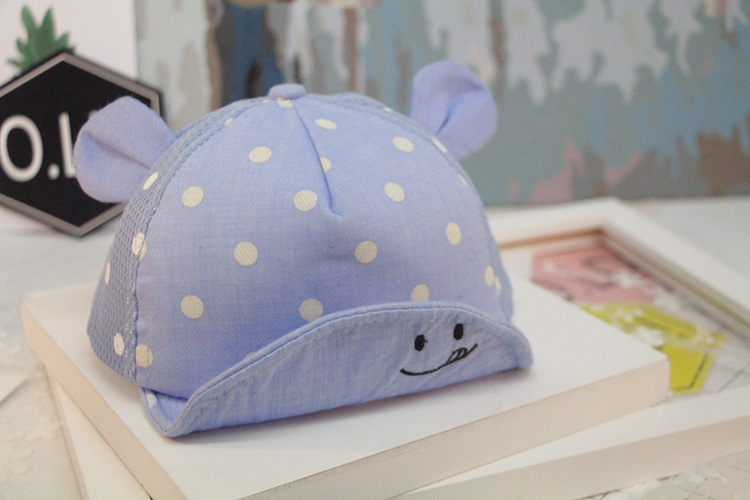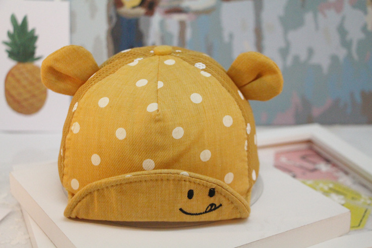 17 봄과 여름 어린이 야구 모자 소년 소녀 아기 스마일 얼굴 귀 물방울 무늬 모자 부드러운 아기 모자 조수를 따라스토어 가기