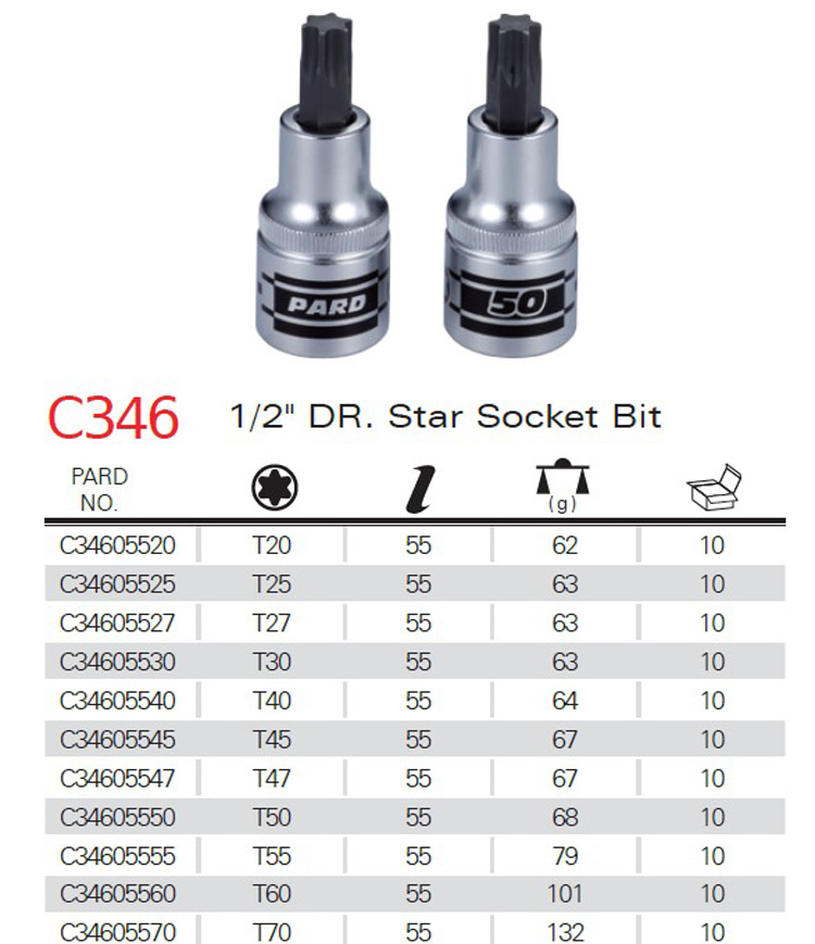 정품 산업 등급 미국 PARD 1/2 스타 스크루헤드 세트 패턴 T20-T70 매화 꽃 헤드