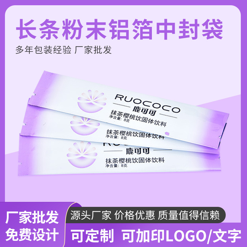 컬러 인쇄 스트립 파우더 폼 커피 백 식사 교체 파우더 긴 스트립 알루미늄 호일 작은 포장 가방 다시 밀봉 플라스틱 식품 가방