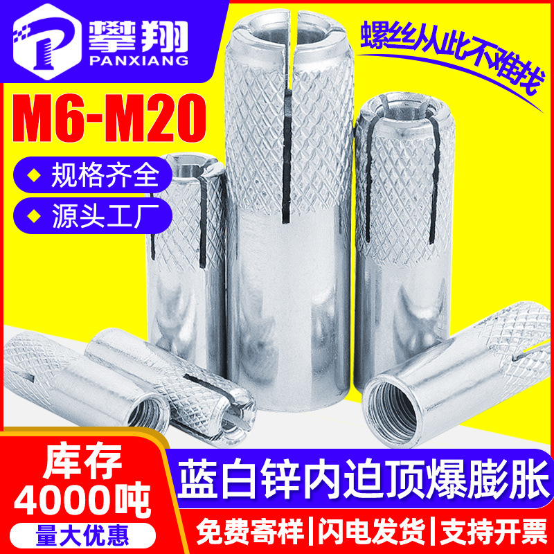 파란색과 흰색 아연 내파 확장 나사 상단 폭발 확장 볼트 내력 도마뱀붙이 내부 파열 확장 튜브 M6/M8/M12 도금스토어 가기