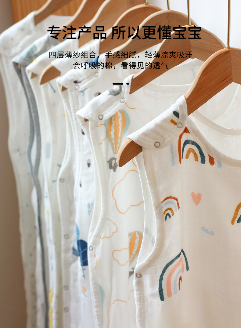 4겹 대나무 면 거즈 아기 수면 조끼, 어린이 발차기 방지 이불, 조끼형 수면 조끼, 매우 부드러운 수면스토어 가기