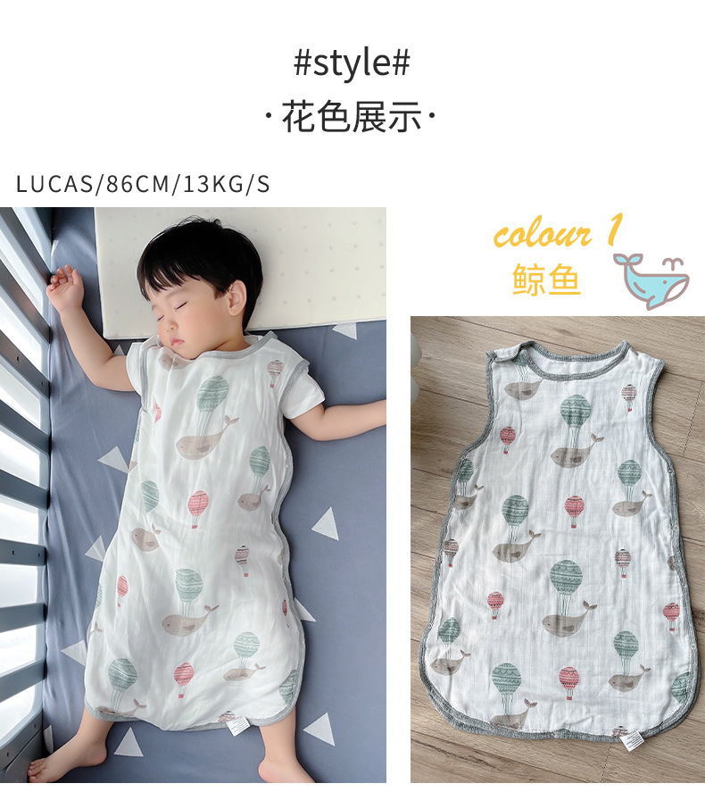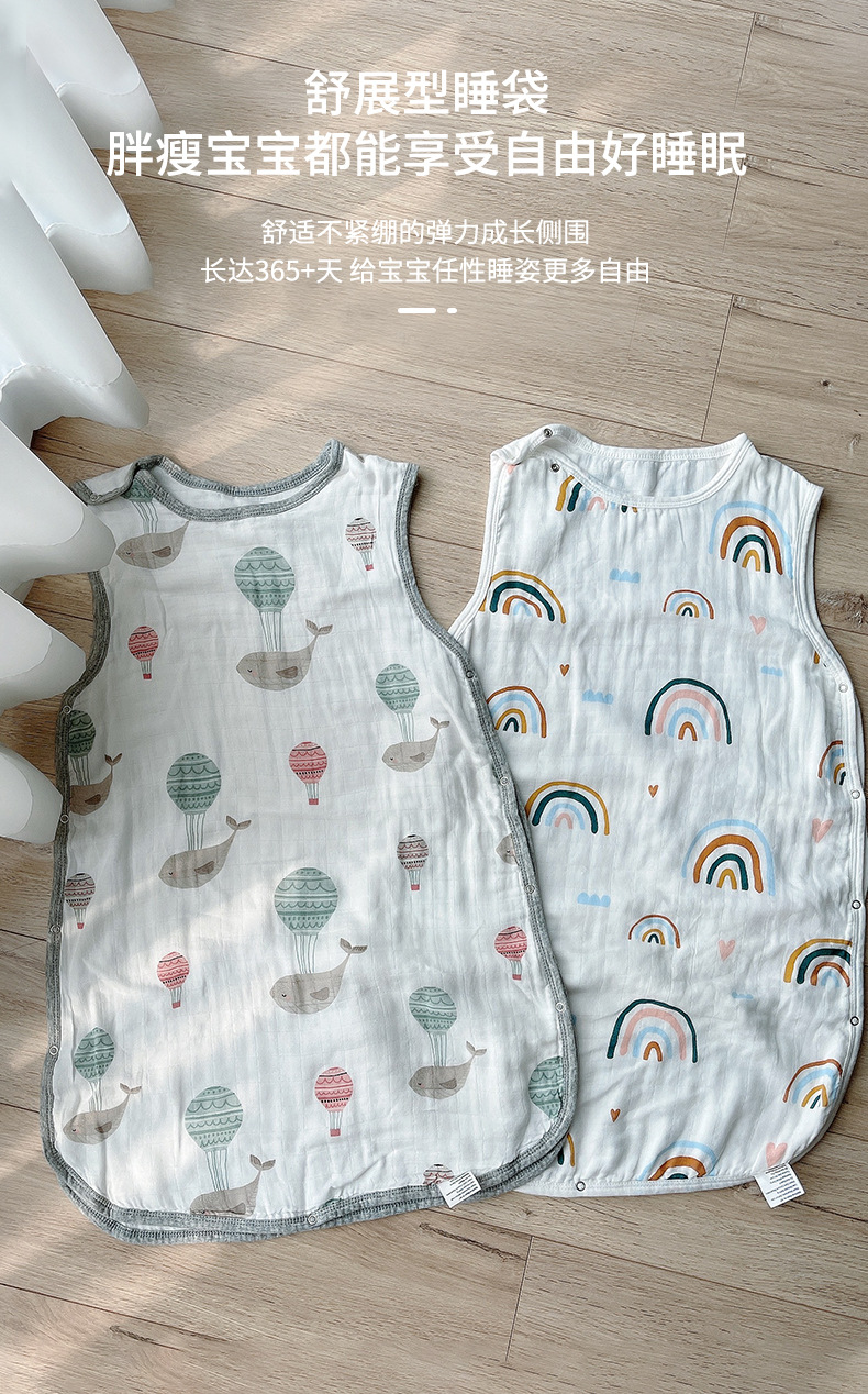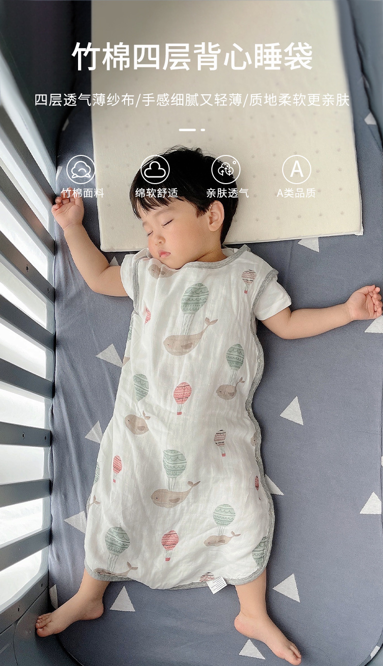 4겹 대나무 면 거즈 아기 수면 조끼, 어린이 발차기 방지 이불, 조끼형 수면 조끼, 매우 부드러운 수면