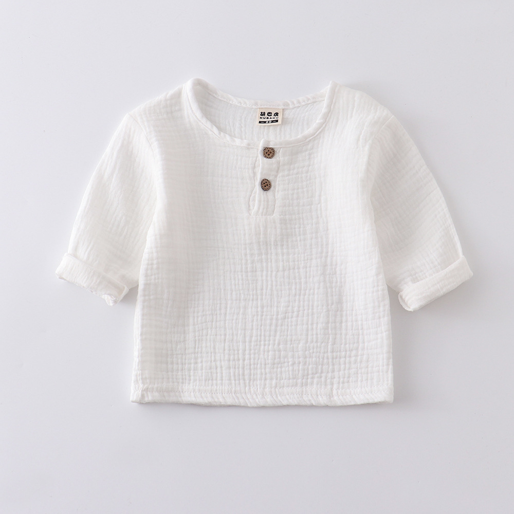 2023 여름 소년 반팔면과 린넨 티셔츠 어린이 탑 어린이 단색 면과 린넨 어린이 에스닉 스타일 아동복스토어 가기