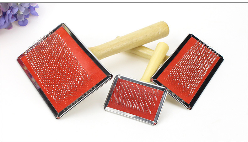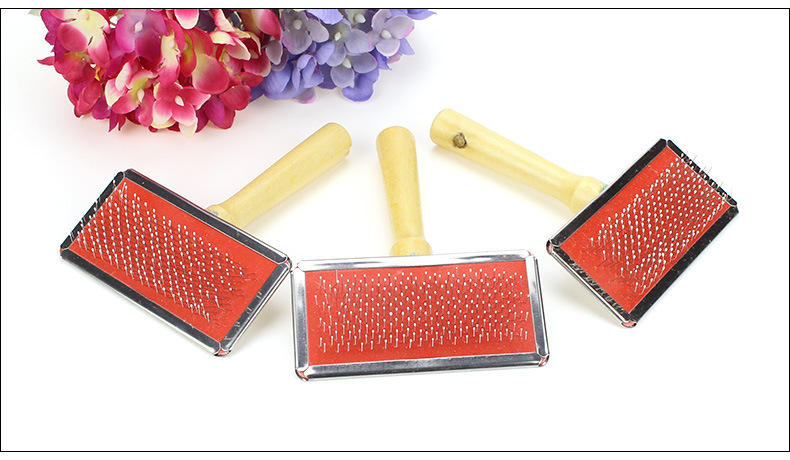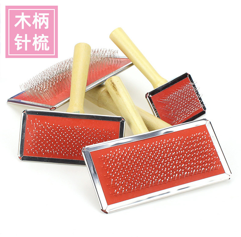 도매 나무 손잡이 애완동물 빗 고양이 마사지 빗 보호 기능이 있는 강아지 바늘 빗 털 제거 및 엉킴 풀기 빗 애완동물 용품스토어 가기