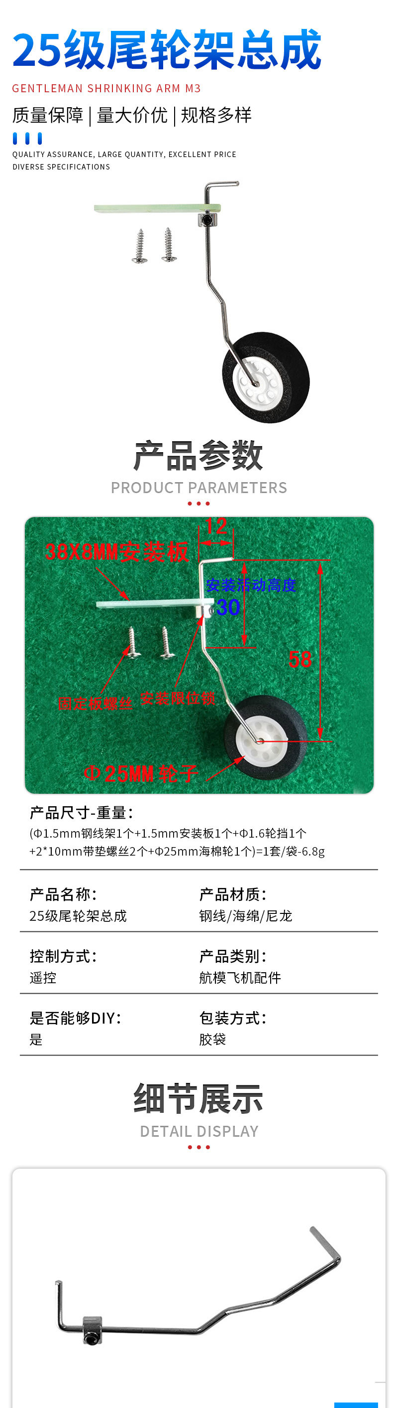 공장 직접 전기 항공기 오일 구동 25 클래스 항공기 모델 고정 날개 스티어링 테일 휠 3 점 랜딩 기어 완료 후