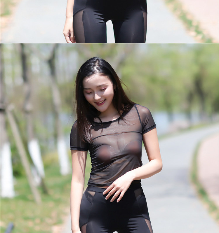 반팔 여성 티셔츠 2025 신상 투명 메쉬 타이트 시스루 실키 밑단 셔츠 섹시하고 유혹적인 배꼽이 드러나는 짧은 스타일스토어 가기