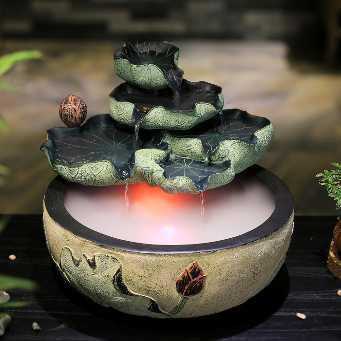 搭配七色雾化器,烟雾袅绕,静静伴随着流水而流淌,源自荷的风韵、加湿空气的效果更好。