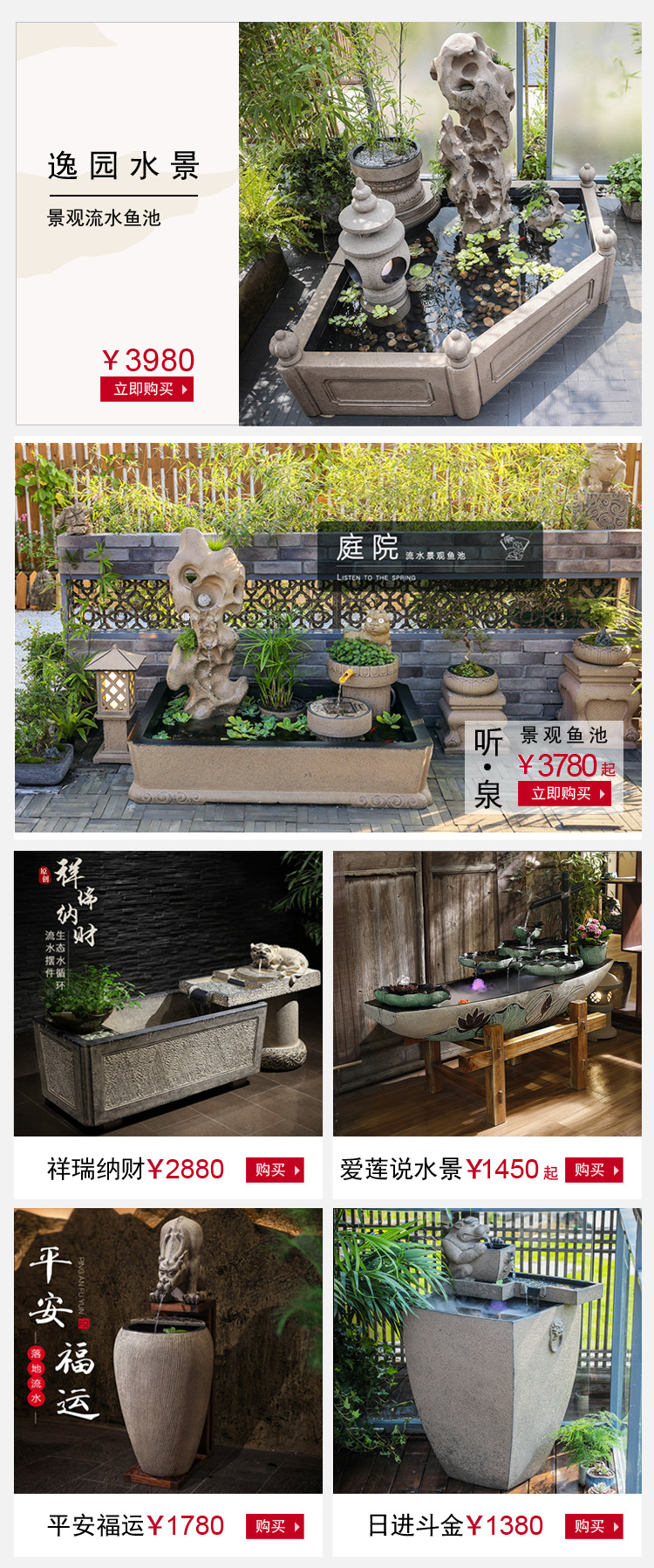 流水潺潺在荷叶上流动,每张荷叶都因为流水而设计的曲线