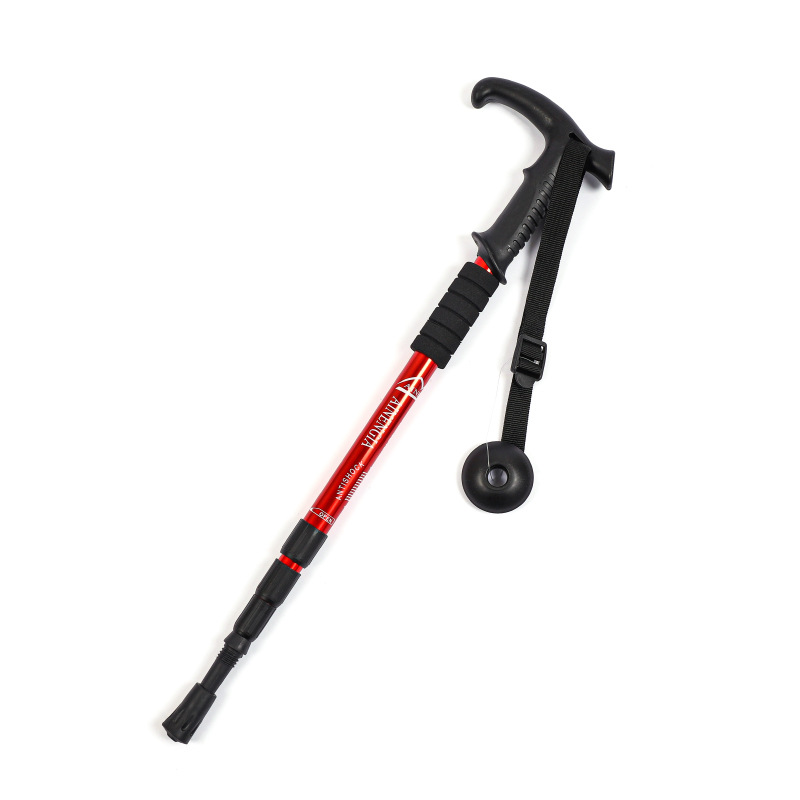 도매 야외 용품 알루미늄 합금 4 섹션 충격 흡수 T 핸들 곡선 핸들 등산 스틱 여행 하이킹 목발 워킹 스틱
