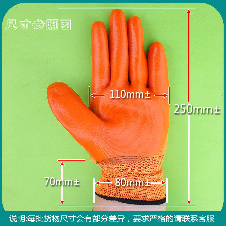【商品材质】:手套芯:十三针尼龙纱;面层:pvc浸胶/挂胶;