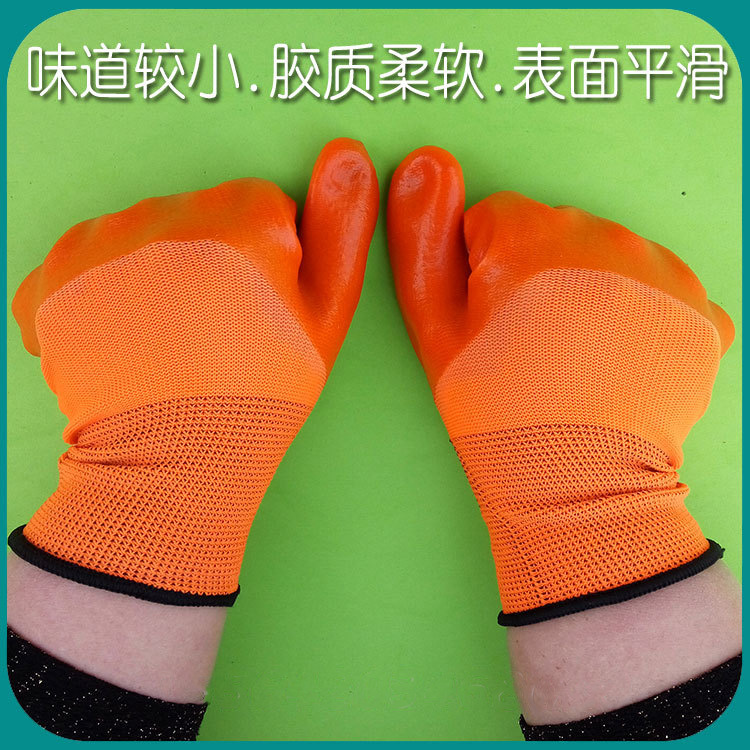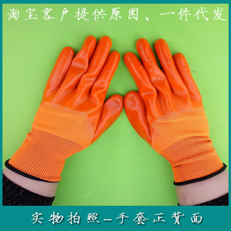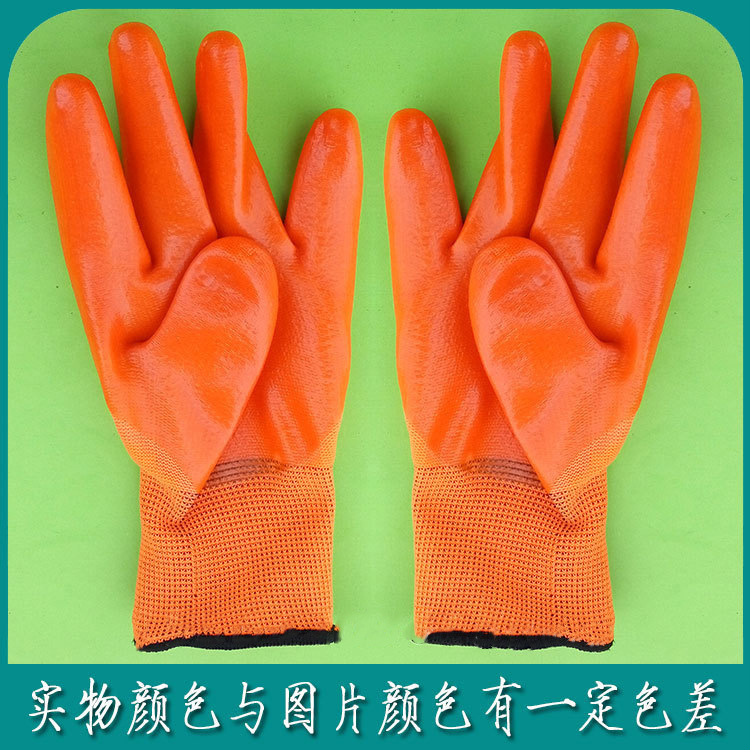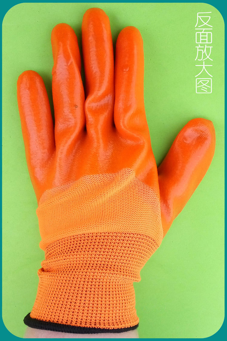 【别名简称】:PVC桔纱桔全挂手套/PVC桔纱黄胶大半挂手套;