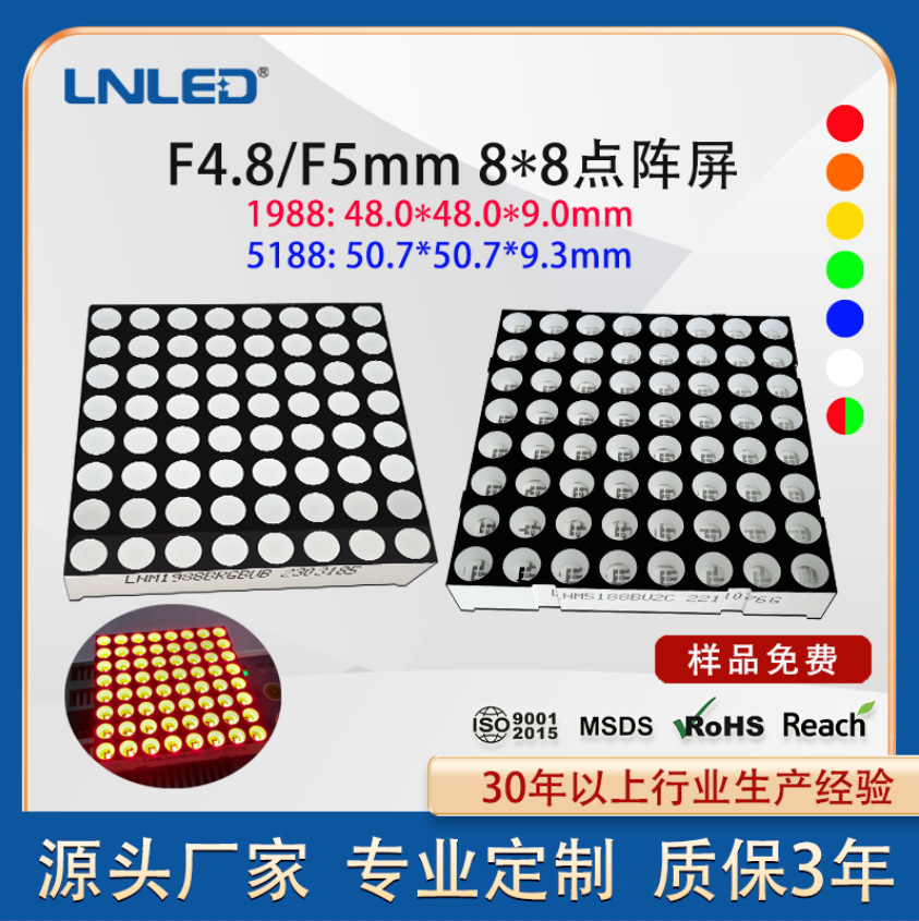 F4.8/F5 8*8 디지털 도트 매트릭스 빨간색 및 녹색 2색 모듈 대형 도트 매트릭스 1988/5188 Linnong스토어 가기