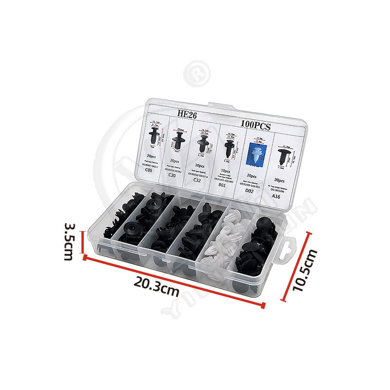 국내 무역 및 해외 무역 100PC 자동차 범용 박스형 버클 조합 세트 도어 패널 나일론 휠 눈썹 클립 HE26