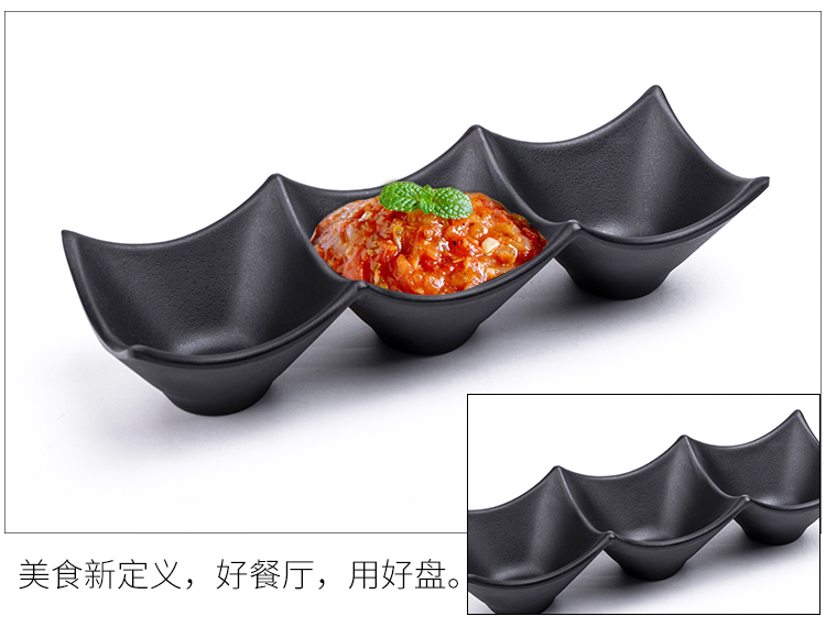 일본과 한국식 요리 조미료 요리 2 칸 맛 접시 도자기 a5 멜라민 블랙 스낵 플레이트 3 칸 딥 소스 요리 도매스토어 가기