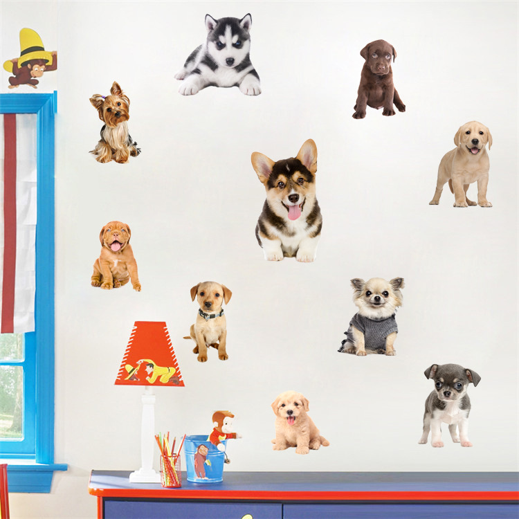 허스키 코기 푸들 Erha 개 고양이 고양이 시뮬레이션 만화 동물 애완 동물 가게 장식 벽 스티커