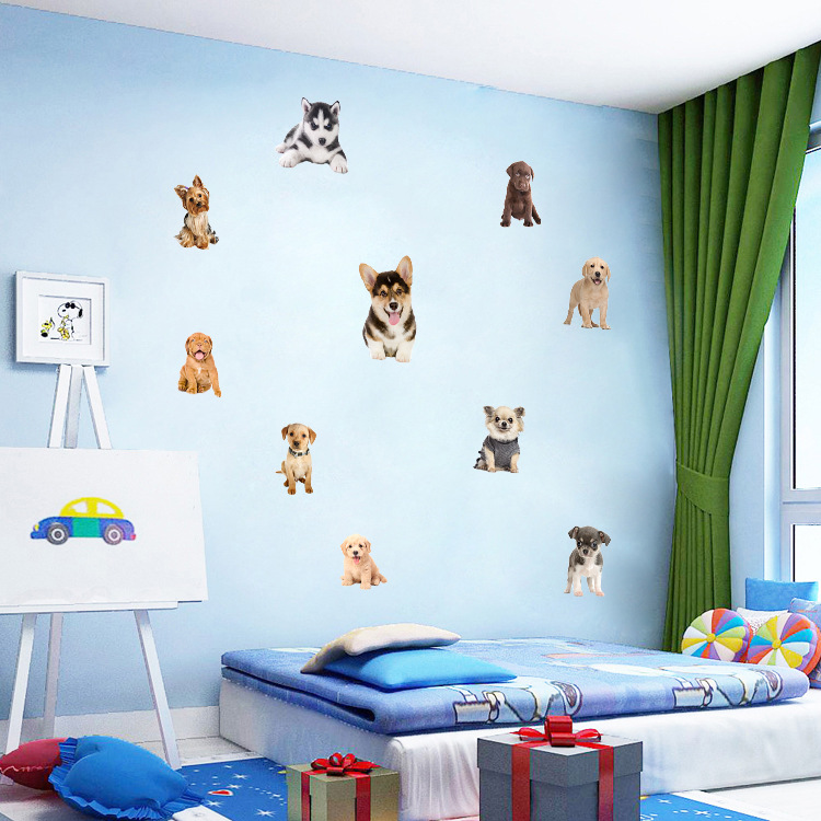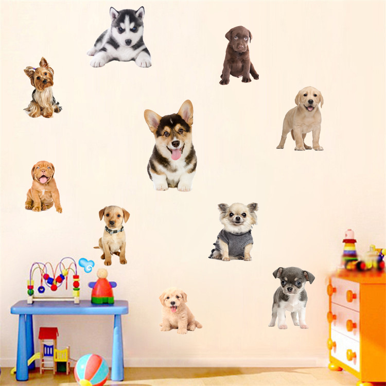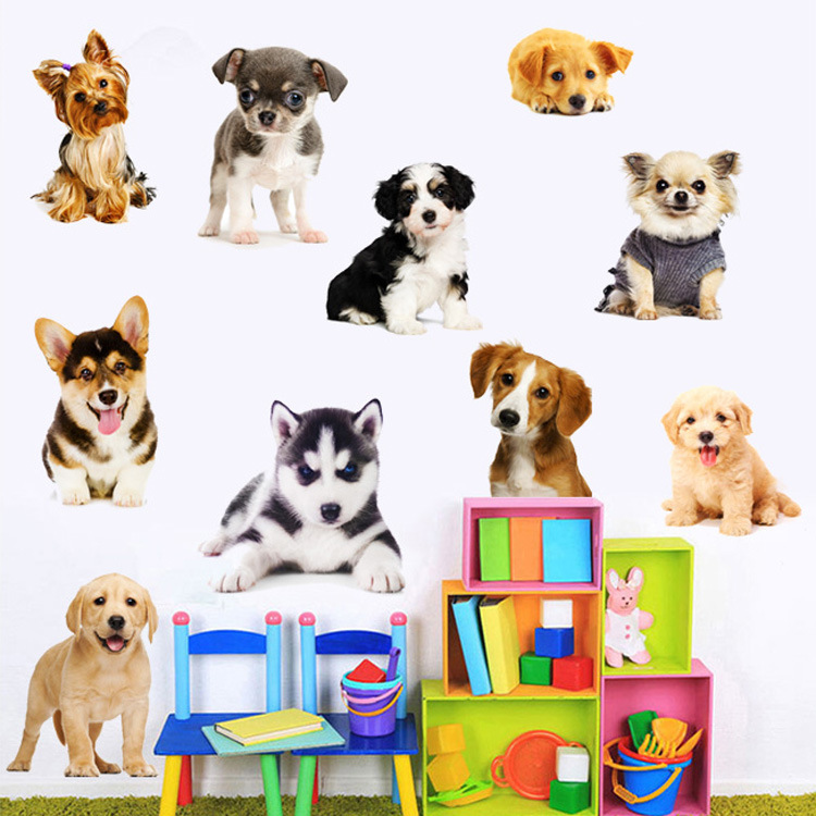허스키 코기 푸들 Erha 개 고양이 고양이 시뮬레이션 만화 동물 애완 동물 가게 장식 벽 스티커스토어 가기