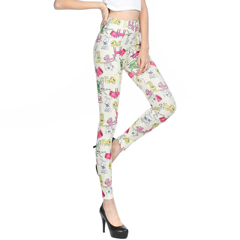 유럽과 미국 만화 동물 패턴 인쇄 레깅스 우유 실크 자른 바지 도매 레깅스스토어 가기