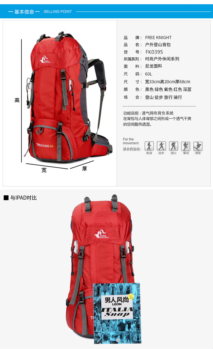自由骑士箱包厂专门为国内外贸易公司、实体店、国内外网上店铺(速卖通、EBAY、WISH、亚马逊、天猫,淘宝C店,京东,拍拍)、军迷户外用品商家、箱包行业创业者等供应大量现货。本厂拥有Free Knight户外品牌,在美国、英国、德国、欧盟、马来西亚、澳大利亚都有注册,您可自定义品牌;并接受来样加工生产、贴牌、定制等,如有任何问题可在线联系我们客服旺旺,如果您对我们的产品有任何感受、想法或建议,欢迎随时提出!